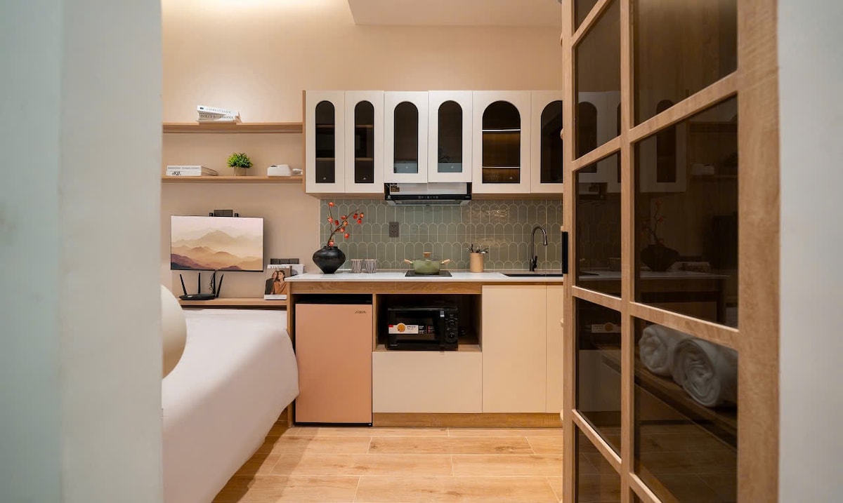 Clouden: un refugio urbano minimalista en el corazón del distrito 1 de Saigón. Este elegante estudio ofrece vistas al horizonte y al jardín, un proyector 4K de 100", cocina completa, lavandería y WiFi súper rápido. A solo unos pasos de Bui Vien y Ben Thanh Market, es céntrico pero tranquilo. Disfruta de una terraza en la azotea, comodidades modernas y entrada sin llave. Ideal para parejas, viajeros solitarios y familias pequeñas que buscan comodidad, conveniencia y tranquilidad después de explorar la vibrante cultura de la ciudad.