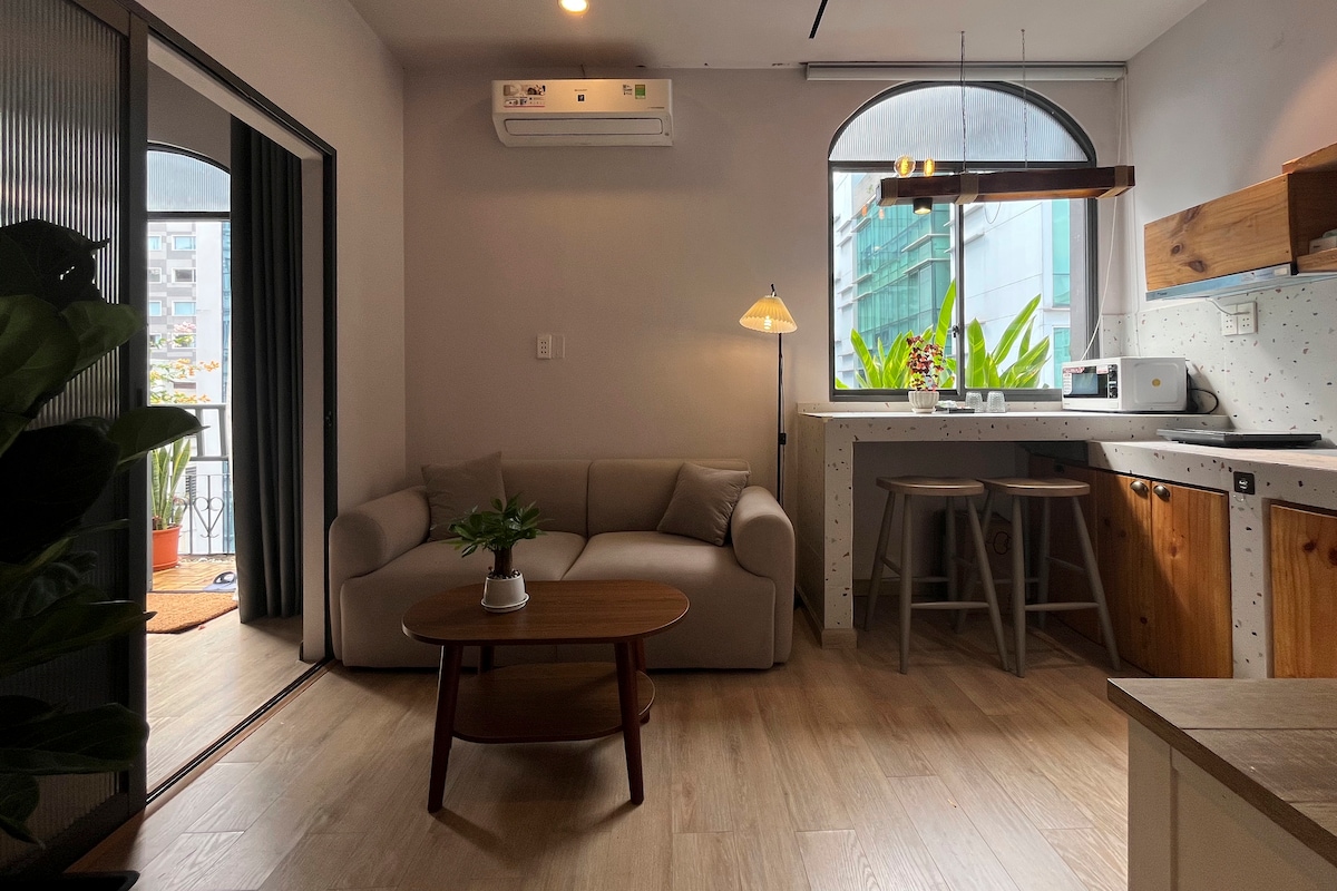 Escape to our serene Wabi Sabi-inspired haven nestled in the heart of the city's most peaceful residential area. This thoughtfully designed space sits just moments from Ben Thanh Market (5 minutes) and your morning coffee fix at Starbucks (1 minute away). Unwind with our impressive 100-inch projection system featuring premium Netflix access. Located in a beautifully renovated building with elevator access, you'll enjoy complete privacy and security in this safe, middle-class neighborhood.