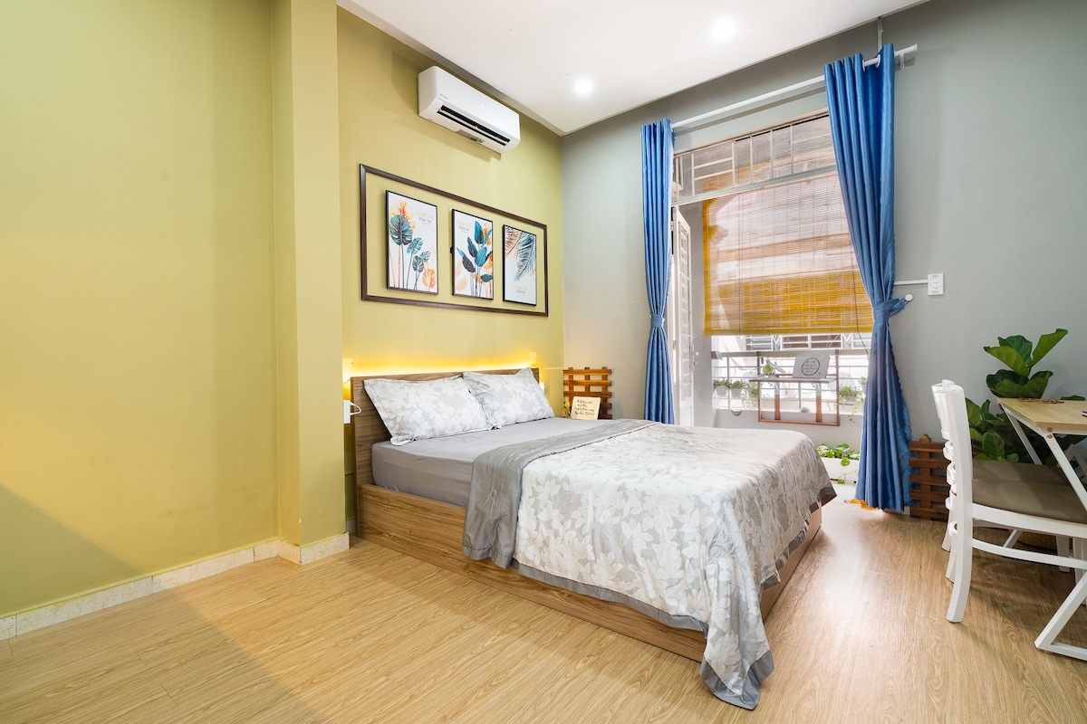 ¡Disfrutemos de una experiencia elegante en el centro de la ciudad! Es espacioso, limpio y tiene luz natural. La cocina privada y el baño están separados del dormitorio. - 1 cama suave para dormir bien. - Balcón con bonitas vistas a la ciudad. - Ascensor, aire acondicionado, sofá, armario, mesa de comedor. - Nevera, microondas, arrocera, estufa de inducción, hervidor de agua, utensilios de cocina. - Smart TV con conexión wifi rápida. - Limpieza GRATUITA, lavandería y aparcamiento. - Acceso las 24 horas, 7 días a la semana y seguro. #Dirección: calle Nguyen Phi Khanh, distrito 1