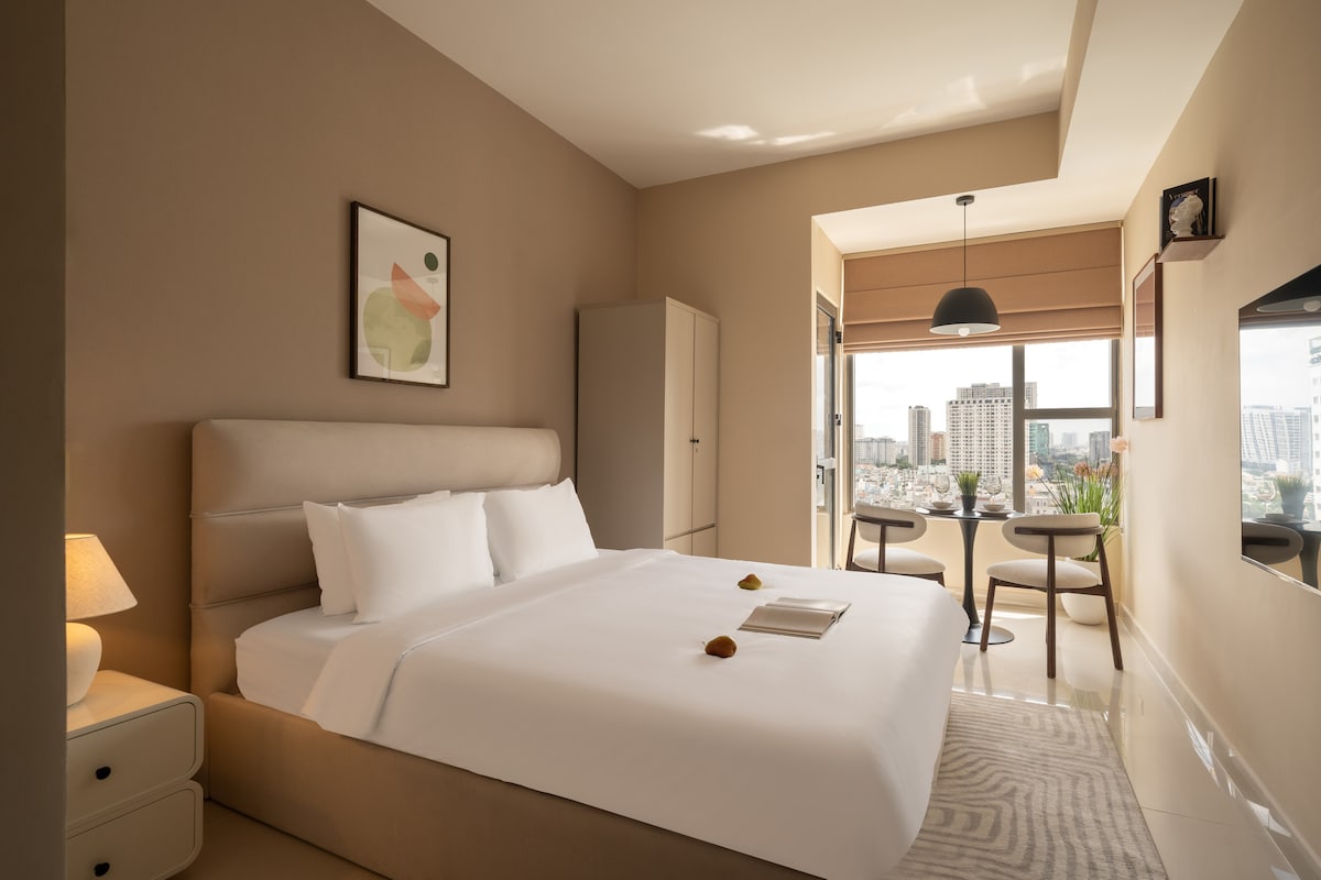 Welcome to your luxury stay right next to District 1. Experience high-end living on the 11th floor. Enjoy breathtaking views of Saigon River, Bitexco Tower, Landmark 81 and the city skyline. Stay close to your family and friends, yet enjoy the privacy of separate spaces. Located in the vibrant District 4, just a bridge away from District 1 and minutes away from Ben Thanh Market, Nguyen Hue Walking Street, and the bustling Bui Vien Area. A unique setup for shared experiences in a vibrant city.