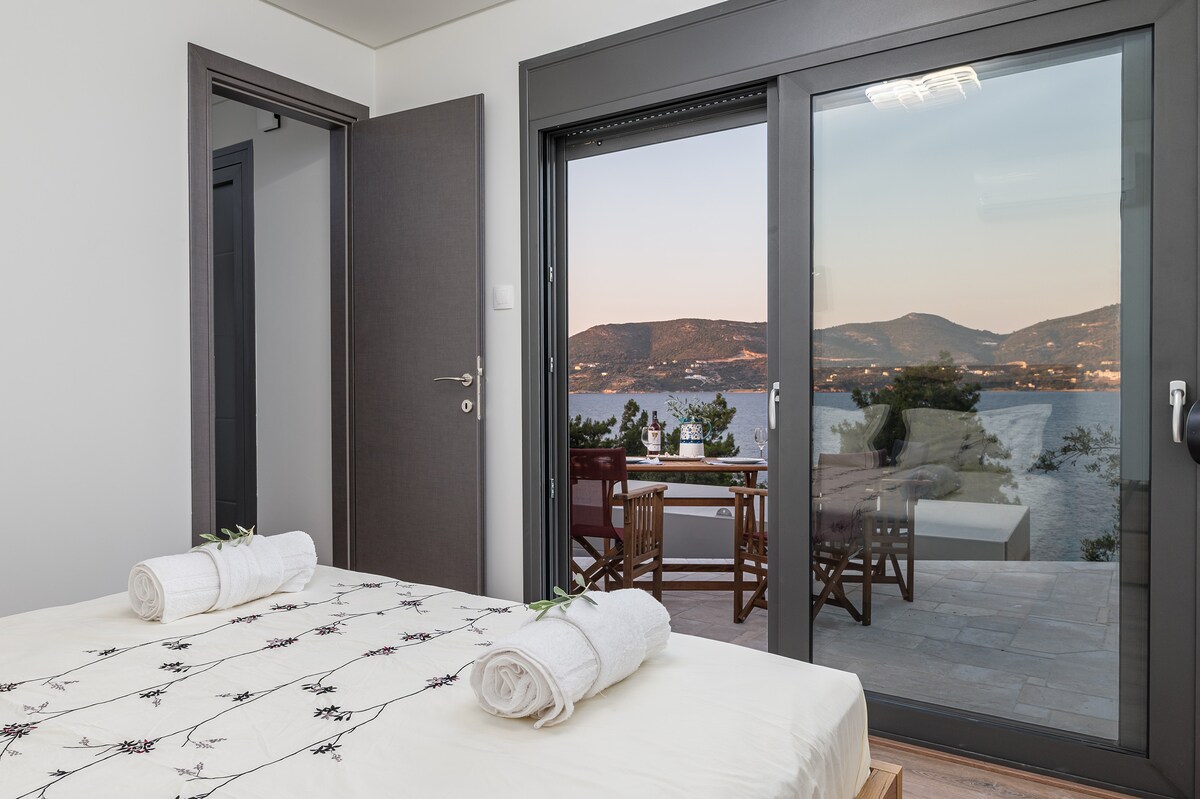 La casa principal es la más grande de las cuatro casas independientes de Chariclea Villas Retreat, y ofrece privacidad y tranquilidad en un entorno natural impresionante. Diseñado para un máximo de 6 adultos y 2 niños, cuenta con una acogedora sala de estar y vistas panorámicas al mar. El espacioso comedor y la cocina totalmente equipada crean el espacio perfecto para comidas y reuniones inolvidables. La propiedad también incluye el Eco, la Cueva de la Luz y la casa de huéspedes, cada uno con su propia entrada privada y área de estacionamiento.
