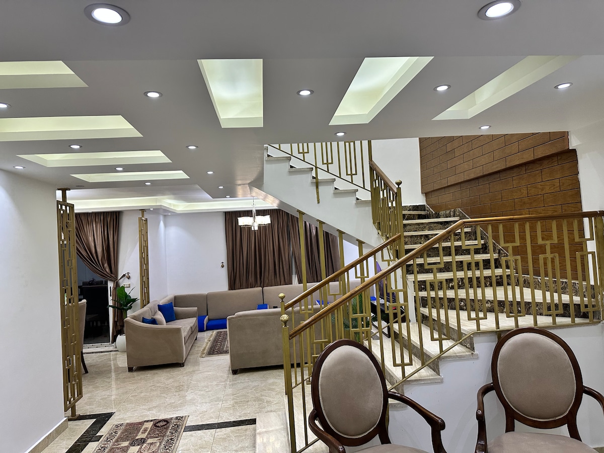 The apartment is located in the most lively place in Giza - Mohandiseen - Sudan Street, Designed for vacationing with family and friends, with a hotel-like ambiance, the apartment is luxuriously furnished to give guests the ultimate relaxing experience during their stay. The apartment offers all the electrical amenities guests require, with 55-inch screens distributed throughout the apartment and bedrooms for watching movie nights. Unlimited WiFi is available throughout the apartment.