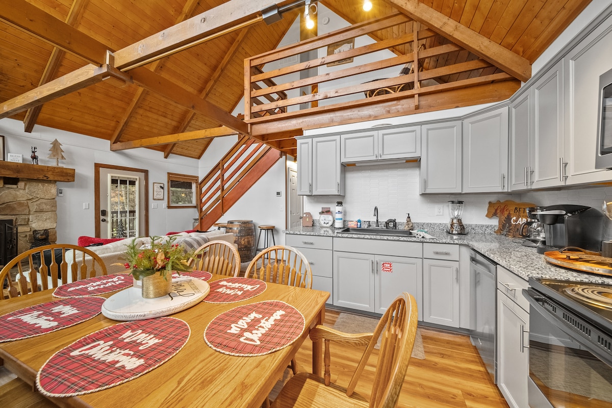Nuestro cómodo chalet de 130 metros cuadrados, 3 dormitorios y loft te proporcionará privacidad en la cima de la montaña, a solo unos minutos en coche de Dollywood y del Strip. Por la mañana, sal a uno de los 3 porches y contempla el amanecer sobre las cimas de las montañas. Por la noche, relájate y pasa tiempo con la familia en la sala de estar o simplemente relájate en el jacuzzi. El chalet cuenta con una cocina bien equipada, wifi, 4 televisores inteligentes, mesa de hockey de aire, juegos y todo lo que necesitas para la escapada perfecta a las Smoky Mountains.