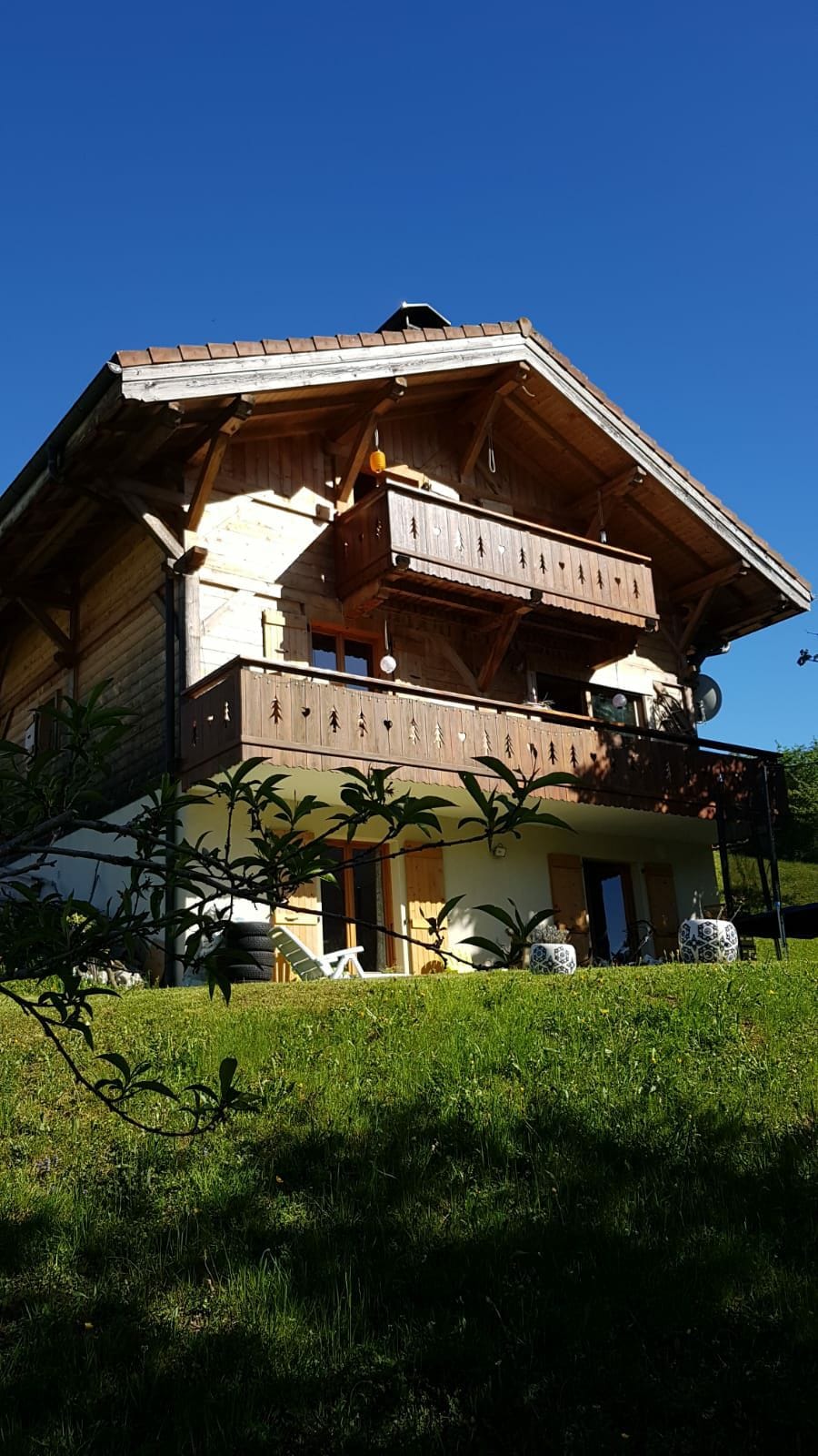 Grand chalet panoramique (190m2) face au Mont Blanc et proche d'un lac de baignade. Classé 4 épis. 4 chambres spacieuses (literie en 3*160cms et 2*90cms). 3 salles de bain dont 2 avec grande douche italienne et 1 avec baignoire. Sauna traditionnel avec vue panoramique par son hublot géant, vrai moment de détente et de récupération après l'effort ! Home Cinema - Babyfoot BONZINI - Enceinte CABASSE- Plancha Gaz etc...