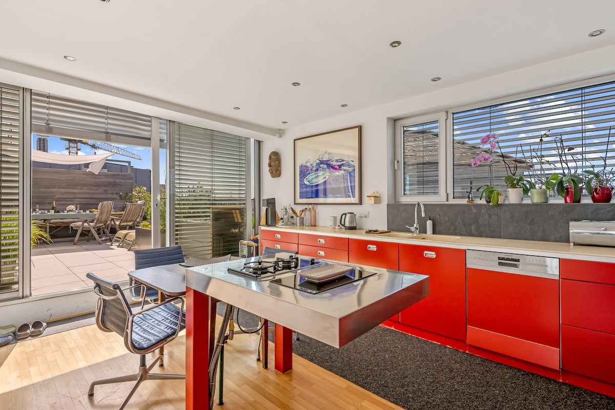 Este espacioso penthouse de 140 m² en 2 niveles combina comodidad y estilo. Disfruta de una estancia relajante en nuestra hermosa ciudad en 4 dormitorios separados y 2 baños modernos y 2 aseos, un comedor excepcional con vistas impresionantes de la noria y el canal del Danubio. En la terraza, justo al lado de la cocina, con vistas panorámicas y una gran mesa de comedor, parrilla y tumbonas, puedes relajarte perfectamente después de hacer turismo.