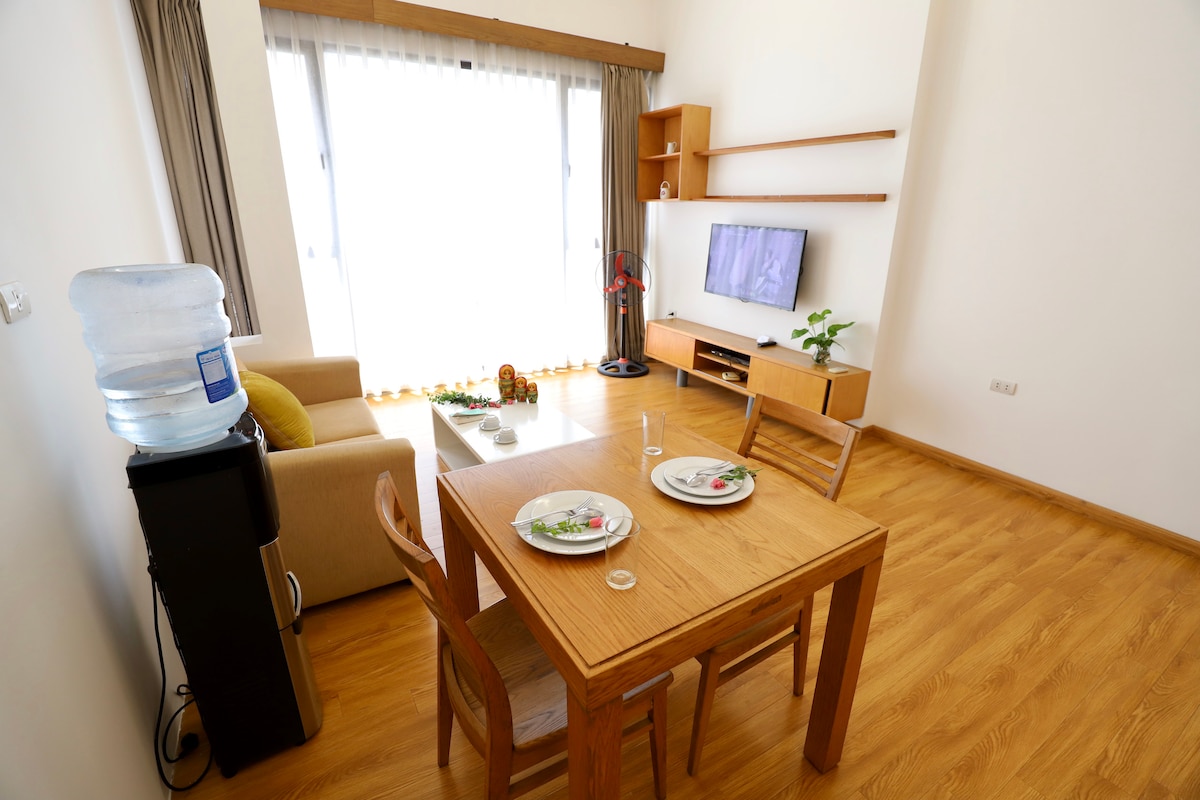Apartamento de estilo japonés premium en el centro de Hanói, a poca distancia de la Academia Diplomática y la Universidad de Comercio Exterior. Los huéspedes tienen acceso total a toda la unidad: sala de estar, dormitorio, baño y cocina totalmente equipada. Con licencia legal para estadías cortas o largas. Dormitorio con 2 camas individuales o 1 cama doble, perfecto para estancias prolongadas. Servicios del edificio: gimnasio gratuito, piscina ($2/visita), supermercado, sala de lectura