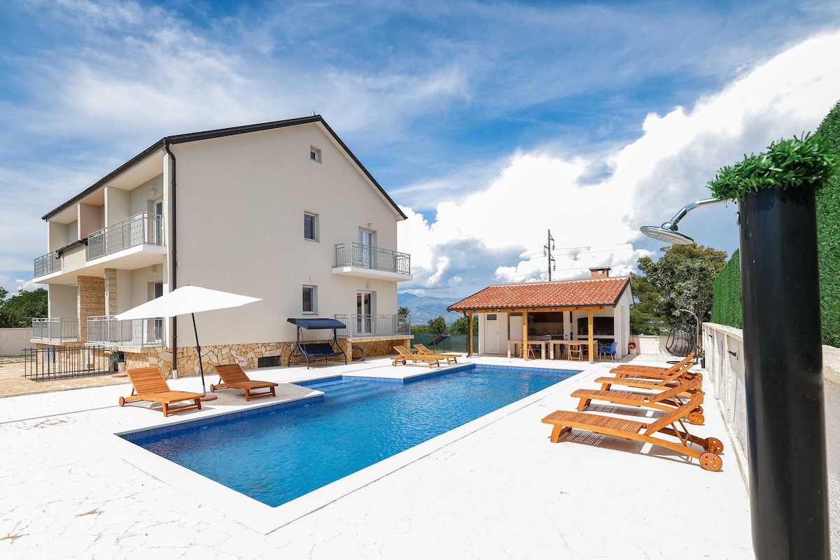 Esta hermosa villa con piscina climatizada, bañera de hidromasaje y sauna se encuentra en un paisaje remoto y aislado con una vista impresionante del valle. Piscina climatizada de abril a noviembre ¡Un lugar ideal para relajarse y un punto de partida para explorar la región y Croacia! Distancia a la ciudad Zadar está a 28 km (aeropuerto a 20 km) de distancia. Šibenik está a 50 km de distancia. Split está a 125 km (aeropuerto a 99 km) de distancia. Distancia a la atracción Lagos de Plitvice a 125 km. Krka a 45 km de distancia Kornati a 30 km de distancia
