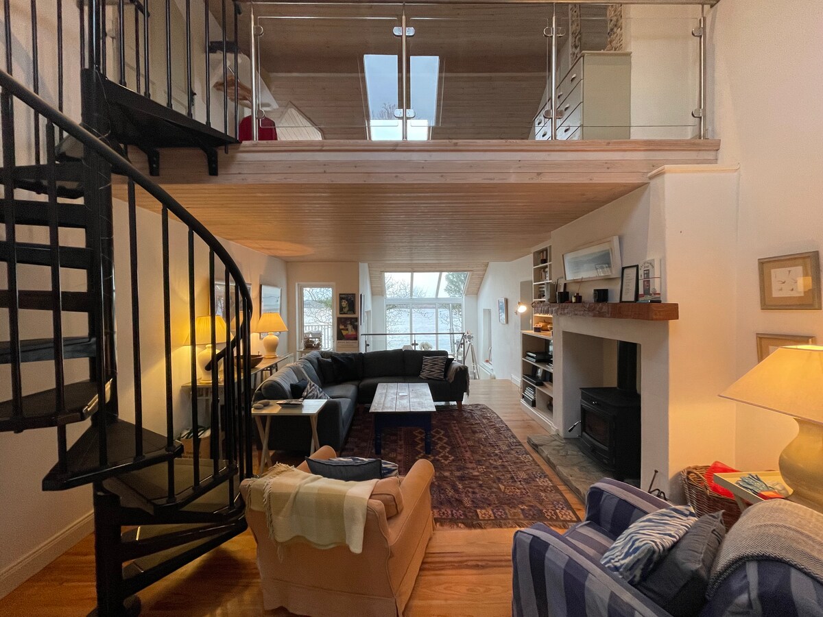 Alojamiento entero. Lugar encantador, luminoso y espacioso con vistas al mar, chimenea y capacidad para 2 personas. Entrada propia a todo el lugar con vistas panorámicas al mar y acceso a la playa desde la propiedad. Cocina totalmente equipada, té y café de cortesía y algunos básicos de cocina: aceite, harina, sal y pimienta. Comedor, sala de estar y dormitorio doble con baño privado. Cuarto de ducha en la planta baja de nuestra tienda de antigüedades, abierta de 1 a 5 durante los meses de verano.
