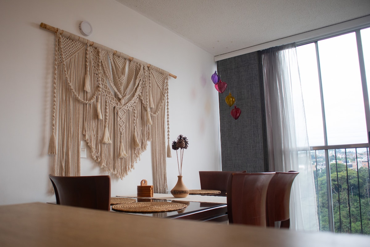 ¡Te doy la bienvenida a mi apartamento totalmente nuevo con acabos de lujo y cómodo,en la capital del eje cafetero. A 5 minutos del centro comercial el progreso.el transporte público de fácil acceso,a solo 20 minutos de santa Rosa de cabal. Te sentirás en un ambiente acogedor para que disfrutes de una vacaciones. El apartamento cuenta con todas las comodidades y el buen gusto solo para que llegues con tu equipaje. * BIENVENIDOS*