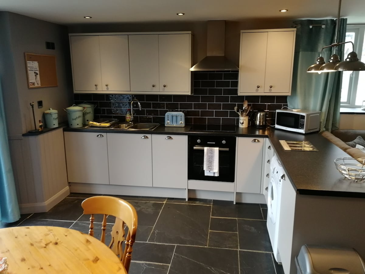 Casa de campo independiente de 2 plantas con una gran sala de estar de planta abierta con triple aspecto en el primer piso que ofrece vistas increíbles. La planta baja ofrece un dormitorio con cama tamaño king, baño con ducha y cocina/comedor con estufa de leña, mesa de comedor y dos cómodas sillas con amplias vistas al campo. Las puertas francesas dan a una terraza con muebles de jardín y chimenea y una zona de jardín privado con barbacoa. Excelente señal wifi en todas partes. Se admiten perros bien educados (máximo 2).