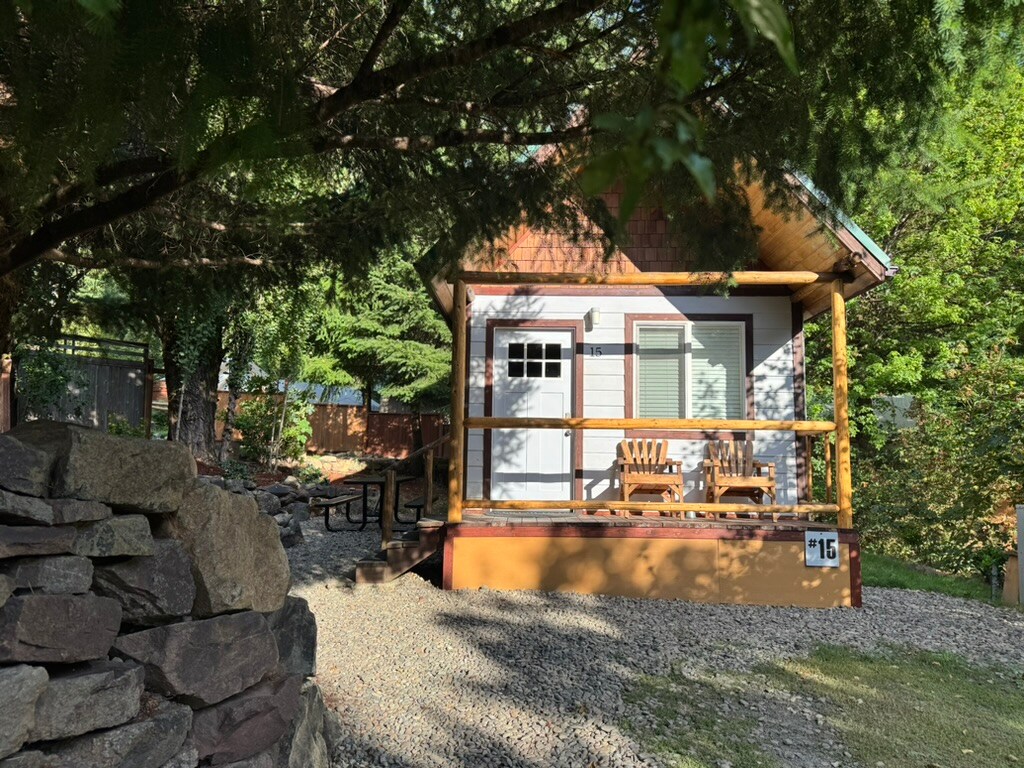 Cabañas rústicas de montaña - ¡Glamping! Nuestras encantadoras cabañas King están perfectamente ubicadas a lo largo del río North Umpqua en el bosque nacional Umpqua. Esta región de las Cascadas de Oregón se conoce comúnmente como «la puerta de entrada a la joya esmeralda de Oregón» hacia el lago Crater. Estamos ubicados en el centro del sendero North Umpqua Trail, con fácil acceso en coche a muchos senderos, cascadas y las aguas termales de Umpqua. Las cabañas King tienen una cama tamaño king y un loft con cama doble. La casa de baño/ducha compartida está a pocos pasos de las cabañas.