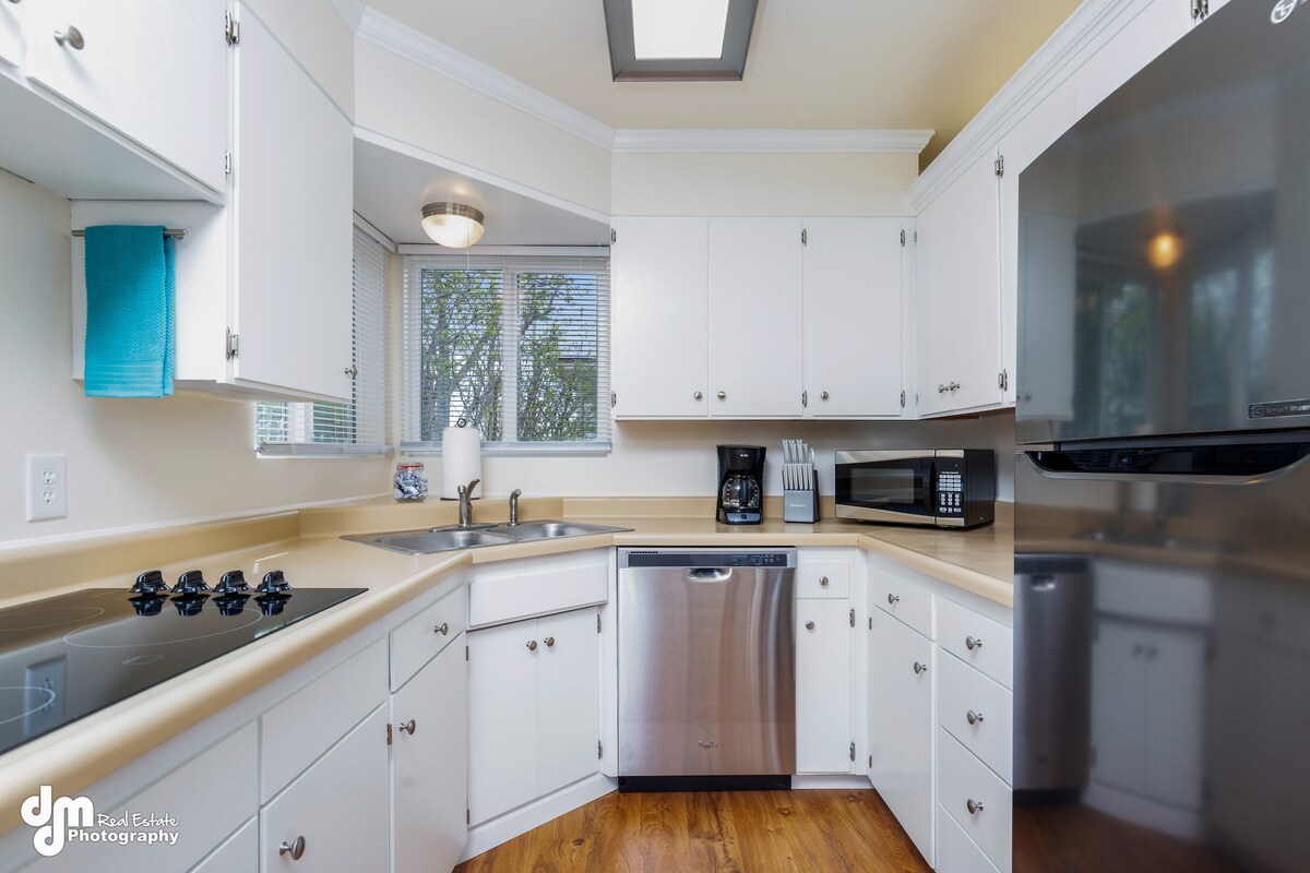 Creekside forest home with modern apartment in desirable Forest Park/Turnagain. An established safe residential neighborhood with lovely homes. 1st level of eye-catching architectural house situated for quick connectivity to downtown, midtown, Minnesota Dr. airport, seaplane Base, Costal Tr/Westchester. Brand new Samsung appliances, laundry in-unit, 1 car garage. Complete renovation completed Jan 2025.