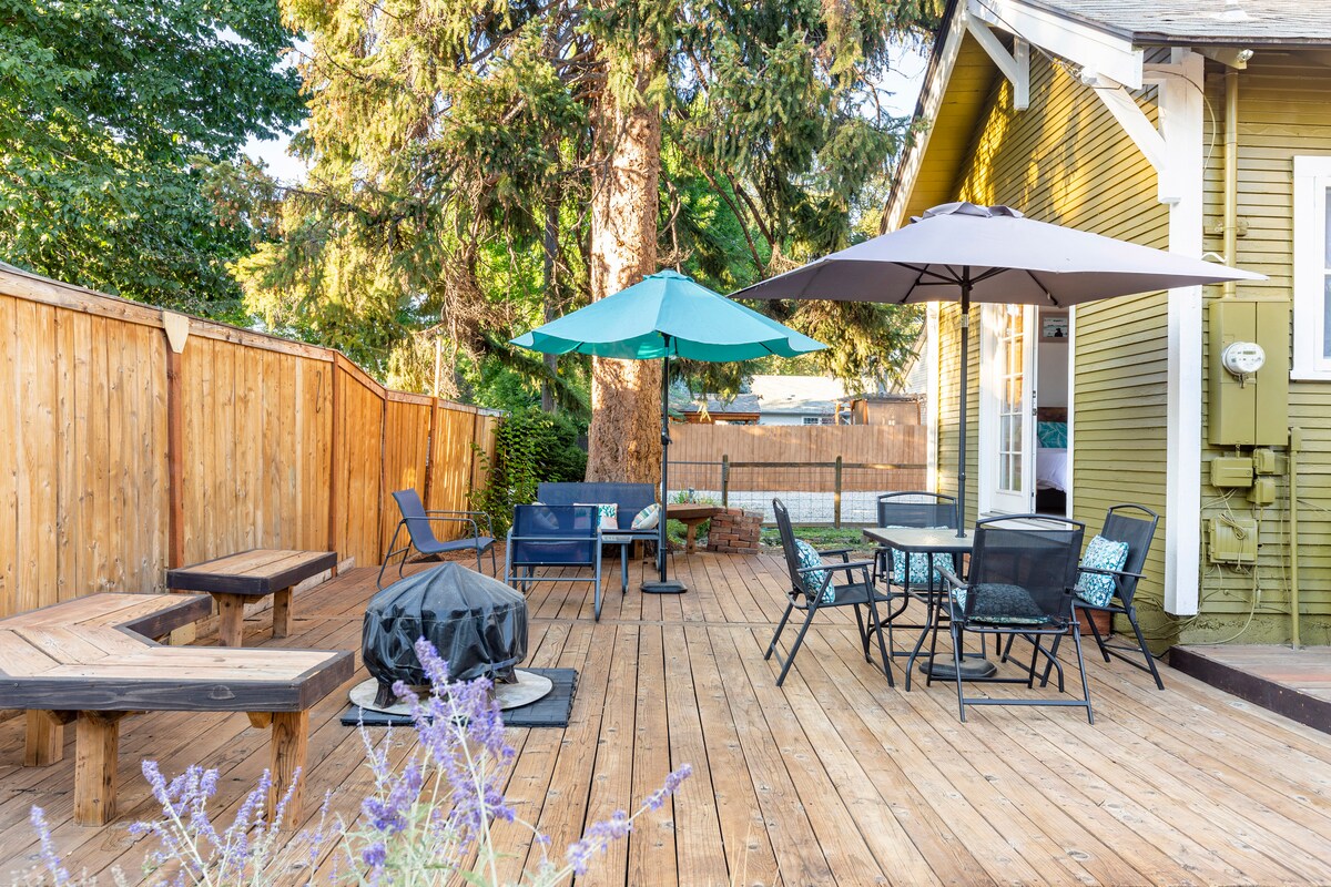 Disfruta del barrio North End de Boise desde este encantador estudio que se encuentra a poca distancia a pie del centro de Boise y de las estribaciones. La entrada del estudio se encuentra en el patio trasero vallado de la casa principal. ¡Disfruta de la terraza y de Boise! *Queremos ser transparentes. El alquiler es una habitación que es muy pequeña. No hay cocina. Los propietarios viven en la casa principal. El patio trasero es un espacio compartido con los propietarios.