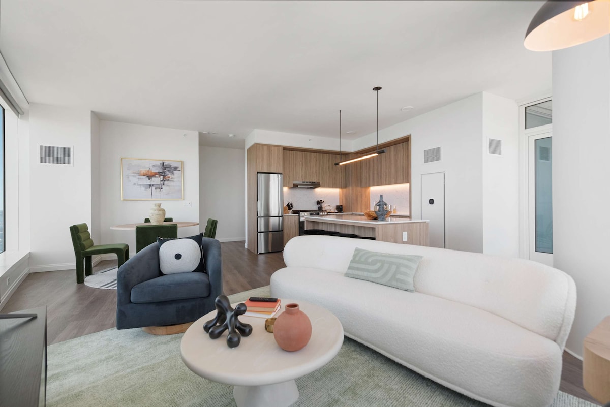 Alójate en este nuevo apartamento 2025 con comodidades de lujo. Perfecto para el trabajo o el ocio, ofrece todo lo que necesitas para una estadía cómoda. Servicios del edificio: - Conserje 24/7 y entrada segura. - Piscina y gimnasio en la azotea con vistas al horizonte. - Salón en la azotea con chimenea. - A solo unos pasos de tiendas de comestibles y restaurantes. - Estacionamiento de pago cerca LO más destacable de la unidad: - Impresionantes vistas de la ciudad. - Trabaja desde el hogar - Lavadora y secadora en la unidad. - Cocina totalmente equipada. - Wifi rápido. - Interior de diseño moderno