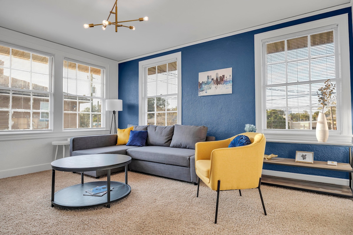 Este encantador bungalow está ubicado en el corazón de Riverside, el barrio más divertido de Jacksonville. Disfruta de una cama tamaño king, altavoces inteligentes, wifi rápido y canales de transmisión, así como de una cocina totalmente surtida y un patio trasero con sillas adirondack, una parrilla eléctrica, una chimenea e incluso kits de s'mores. Utiliza nuestra guía de recomendaciones personalizada para explorar tiendas y restaurantes locales en nuestras bicicletas cruiser (completas con portavasos y soportes para teléfonos celulares). También se incluye estacionamiento privado en la entrada.