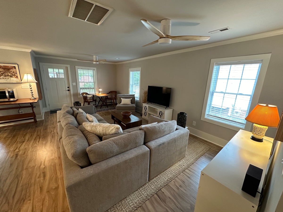 Elegante casa recién reformada en un barrio tranquilo, a poca distancia a pie de la bodega Brookside y del distrito de Person St. Promete un retiro relajante en una ubicación privilegiada, a menos de 5 minutos del centro de la ciudad, en el centro de todo lo que Raleigh tiene para ofrecer. La lista de servicios demostrará que es una estancia cómoda: - Cama cómoda. - Cocina totalmente equipada con una estufa de lujo - Televisores inteligentes en todas las habitaciones. - Área de entretenimiento al aire libre privada.