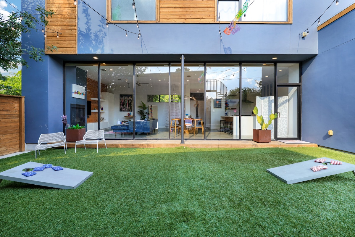 ¡Hermoso hogar construido en 2021! Amueblado con el estilo que llamamos "fiesta de mediados de siglo" por un diseñador de interiores local. Esta casa ofrece 3 dormitorios, 2,5 baños, 2 salas de estar y un hermoso patio de tercer piso. El parque Mahncke está ubicado junto a Alamo Heights, justo al final del camino de DT y de muchas atracciones que le esperan. Tienes The Pearl District, The Alamo, el famoso Riverwalk, el Jardín Botánico y muchos museos. Cocina totalmente equipada, dos televisores inteligentes, wifi, entrada sin llave y estacionamiento.