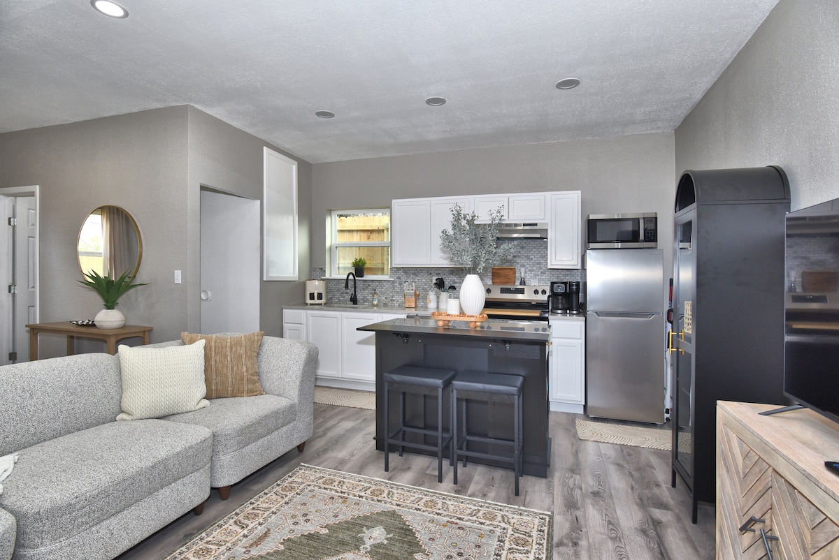 ¡Disfruta de tu escapada privada en este lujoso loft! Diseñado para ofrecer comodidad de primer nivel, en un barrio seguro y tranquilo, para que puedas relajarte con estilo. Recientemente remodelado a 350 pies cuadrados, el loft se adapta perfectamente a viajeros solteros, parejas y mascotas que pueden jugar en el patio trasero compartido totalmente vallado. ¡Trabajar a distancia aquí es pan comido! ¡Aprovecha el wifi de alta velocidad, el gran escritorio incorporado y la pequeña cocina equipada con café! Además, ¡lleva tu relajación al siguiente nivel reservando el servicio de jacuzzi por 20 USD/noche!