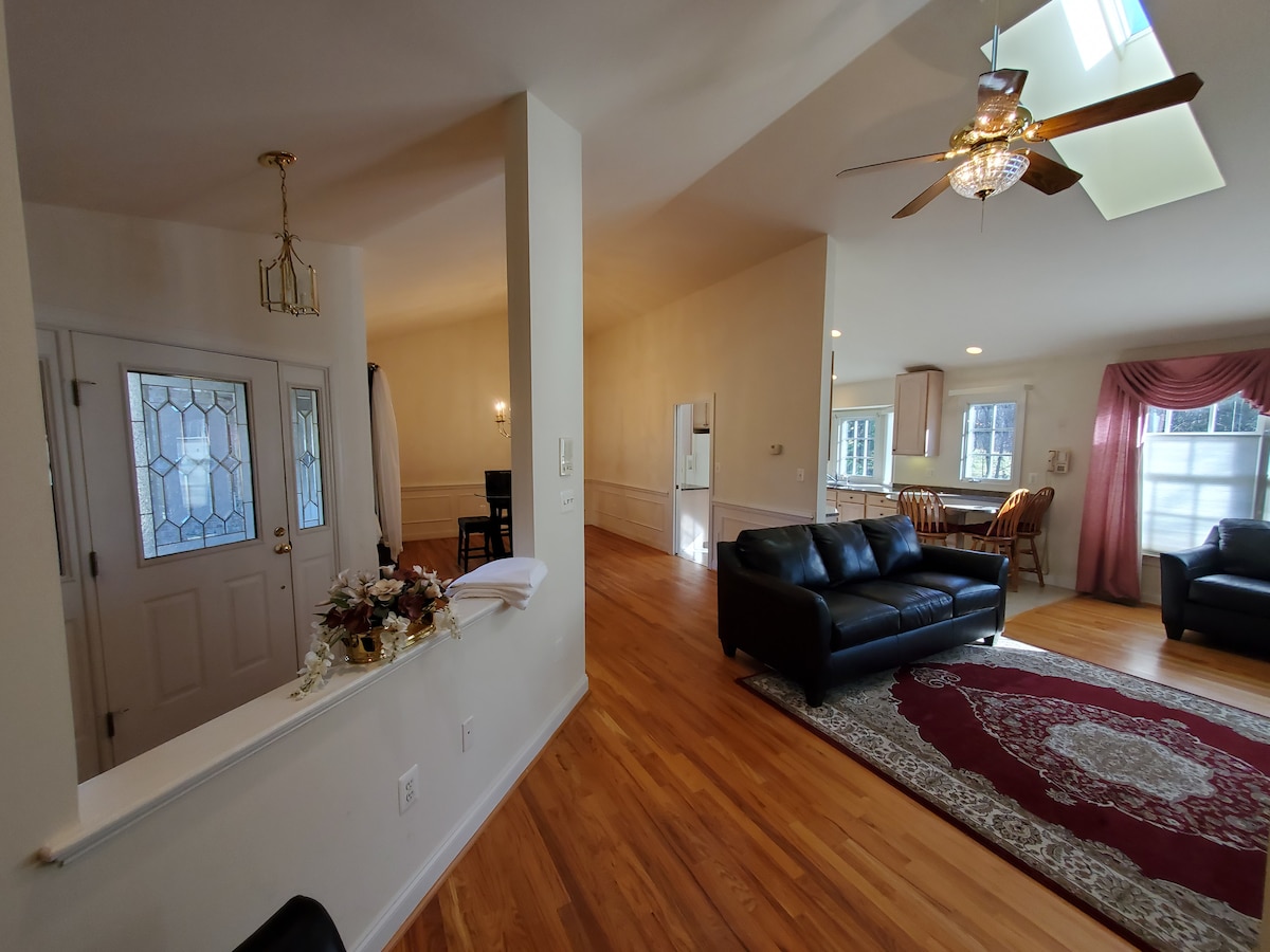 Lujoso, privado y sereno. Ubicación céntrica: a 1 milla del metro, a 8 minutos de IAD y del centro de Reston. Estacionamiento exclusivo en la calle. Cerca de múltiples tiendas y restaurantes. 2 patios y un patio lateral. Uso privado de la espaciosa bañera de hidromasaje con toallas de gran tamaño y lujosas batas. Enorme cama tamaño king Sleep Number® para una comodidad excepcional. Cocina digna de un chef y lavadora/secadora. Netflix, YouTubeTV y Prime gratuitos; tu propio termostato y wifi ultrarrápido. No hay espacios compartidos. Construido nuevo en 2023.