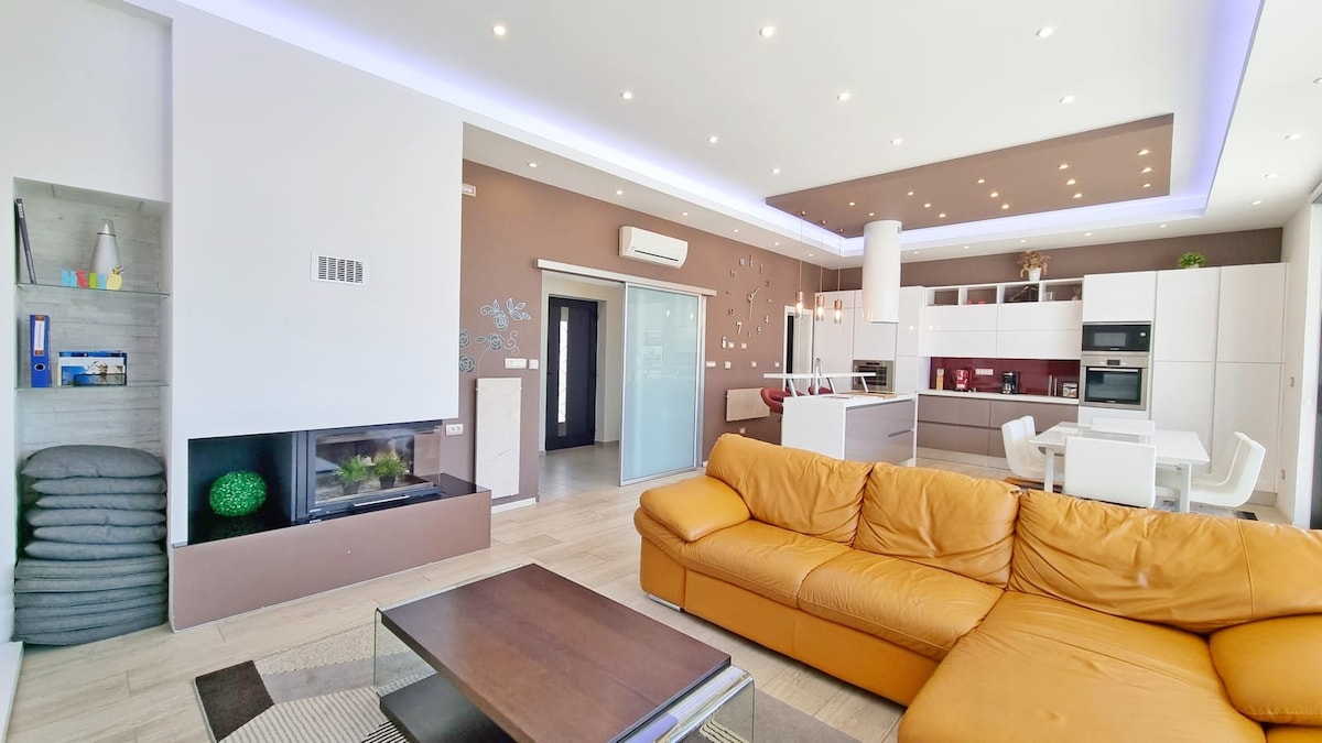 Esta villa está rodeada de vegetación y ofrece una vista impresionante del mar Adriático. La piscina de 50 m² está llena de agua salada. En la planta baja tiene una cocina totalmente equipada, sala de estar y dos dormitorios con baños. La sala de estar conduce a una hermosa terraza. También hay una cocina de verano y una zona de barbacoa. En el primer piso hay un dormitorio con baño, una sauna y un vestidor. También tiene una galería con máquinas de ejercicio y futbolín. La villa ofrece dos plazas de garaje.