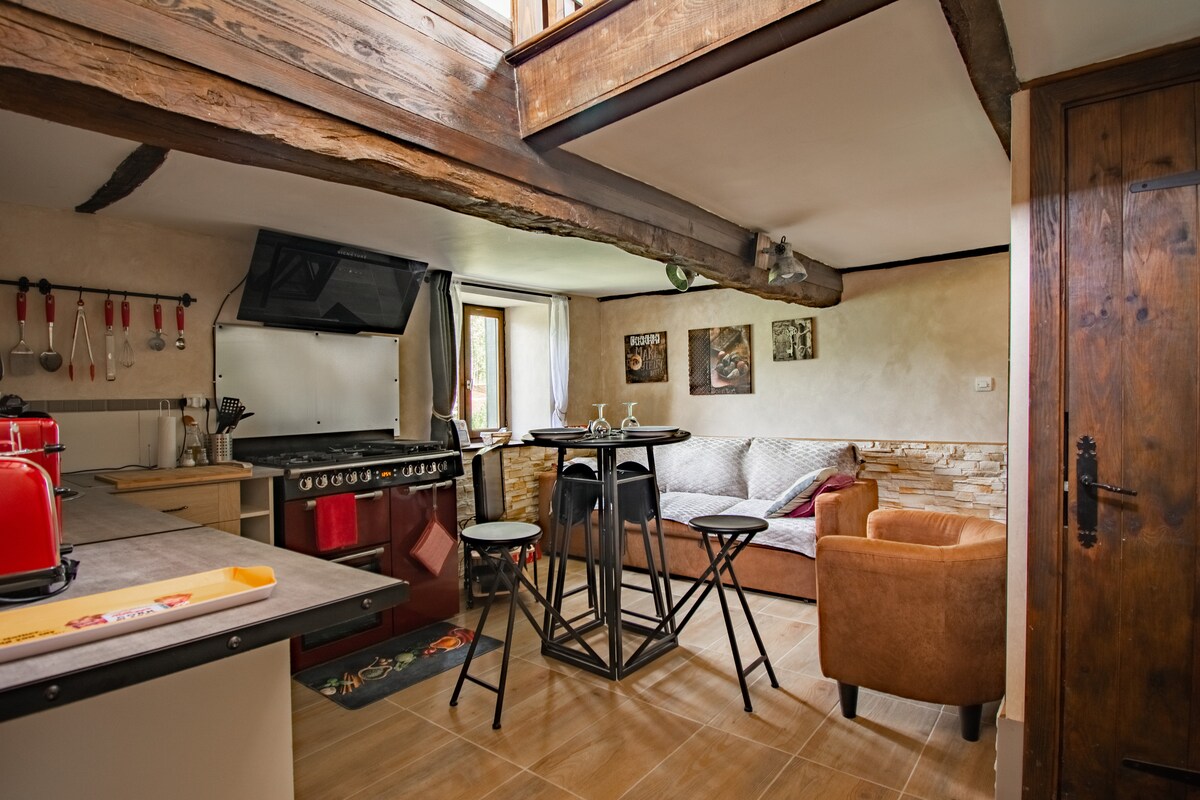 Se alojará en la ampliación de nuestra casa de campo. Encontrará todo lo necesario para pasar una estadía tranquila. Amplio alojamiento con cocina, baño con ducha a ras de suelo, sofá cama en la planta baja ideal para niños y dormitorio en altillo no cerrado en la planta superior. Por último, disfrutará de una magnífica vista en la sala de estar con acceso a la terraza.