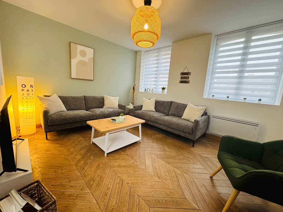 ¡Ven y disfruta de nuestra encantadora y ACOGEDORA CASA ubicada a 5 minutos a pie del centro de Abbeville! Te seducirá con su calma y luminosidad. Casa completamente reformada en 2021, amueblada y decorada con gusto, toda la comodidad, totalmente equipada, todo lo necesario para dejar tus maletas * A 5 minutos a pie del centro de la ciudad en una calle tranquila, estacionamiento gratuito en la calle. * Llegada completamente automática, accedes al alojamiento de forma independiente con una caja de llaves