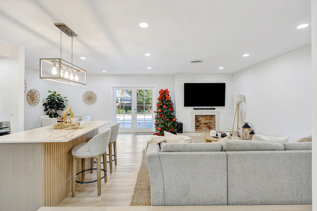 Días de piscina de agua salada, noches cálidas y esa sensación de tranquilidad típica de Jupiter. Te damos la bienvenida a tu escapada costera privada. A solo unos minutos de las mejores playas, restaurantes y lugares de interés de Jupiter. Relájate junto a la piscina, haz una parrillada en el patio o sal a disfrutar de días de playa. En el interior, disfruta de un espacio tranquilo y cómodo con ropa de cama de lujo y espacio para relajarte. Perfecto para familias, parejas o una escapada rápida. ✔ Piscina de agua salada + patio trasero Porche ✔ con mosquitero Televisores ✔ inteligentes en todas las habitaciones ✔ A 10 minutos de las playas de Jupiter