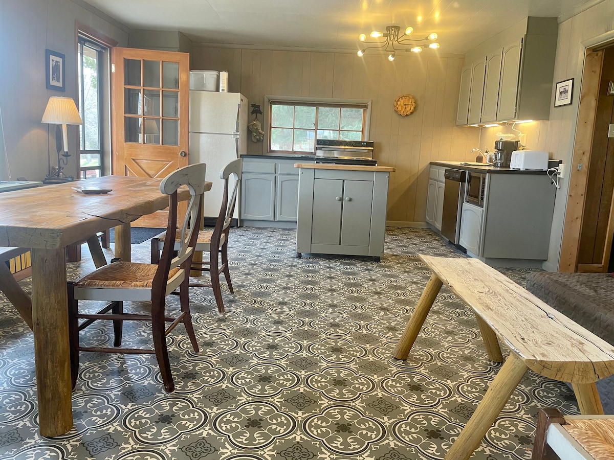 Esta cabaña de dos pisos recientemente remodelada en Pine Creek es un santuario. La cabaña tiene un interior inspirado en la naturaleza con una entrada de baldosas de pizarra, suelos de madera y techos de lengüeta y ranura que le dan un toque moderno de montaña. Disfruta viendo la abundante vida silvestre desde cada ventana y escuchando el suave arroyo mientras estás sentado en el jardín privado. Esta cabaña se encuentra cerca del centro de Pinedale y al lado de los anfitriones, pero se siente aislada. A 78 millas escénicas del centro de Jackson, WY.