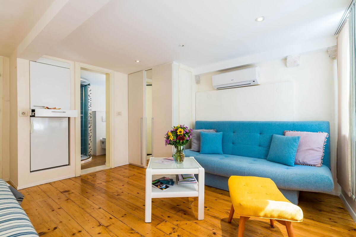 Despiértate con la luz del sol entrando por los tragaluces en este moderno loft con encanto histórico. Tómate una copa de vino y observa el mundo pasar desde la terraza de este apartamento reformado en un edificio histórico. ¡Tu confianza y seguridad son nuestra prioridad! El estudio se encuentra junto a la entrada de Buza Gate, una de las tres entradas principales a la zona peatonal del casco antiguo de Dubrovnik, lo que hace que tu llegada sea sin complicaciones y sin escalones, incluso con equipaje.
