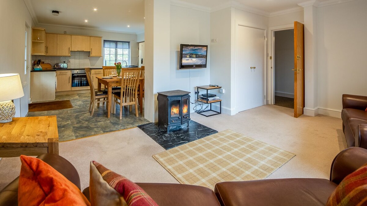 Este apartamento de 2 dormitorios es el antiguo Gran Salón del Castillo de Dollarbeg, bellamente convertido. Construido en 1890, el castillo de Dollarbeg fue el último edificio de estilo baronial gótico de su tipo jamás construido. Bellamente restaurado en 2007 con los más altos estándares, se convirtió en 10 propiedades de lujo, una de las cuales es una conversión del "Gran Salón" original con su techo abovedado y vistas majestuosas a través de los terrenos formales hacia las colinas de Ochil a lo lejos.