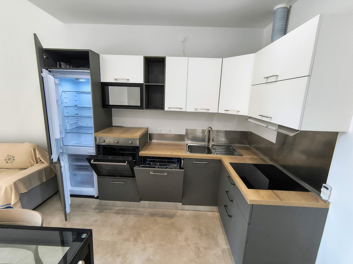 Apartamento de dos habitaciones completamente renovado en un edificio de apartamentos en el cuarto piso (con ascensor) frente al hermoso muelle de Porto Santa Margherita y consta de un dormitorio doble con una tercera cama, televisor inteligente de pared de 40 pulgadas, un baño con ducha (100x80 cm) y lavadora, una sala de estar con cocina americana que incluye lavavajillas, microondas y cafetera Nespresso, sofá cama (140x190 cm), televisor inteligente de 55 pulgadas con Netflix y canales alemanes, radio por Internet, wifi.