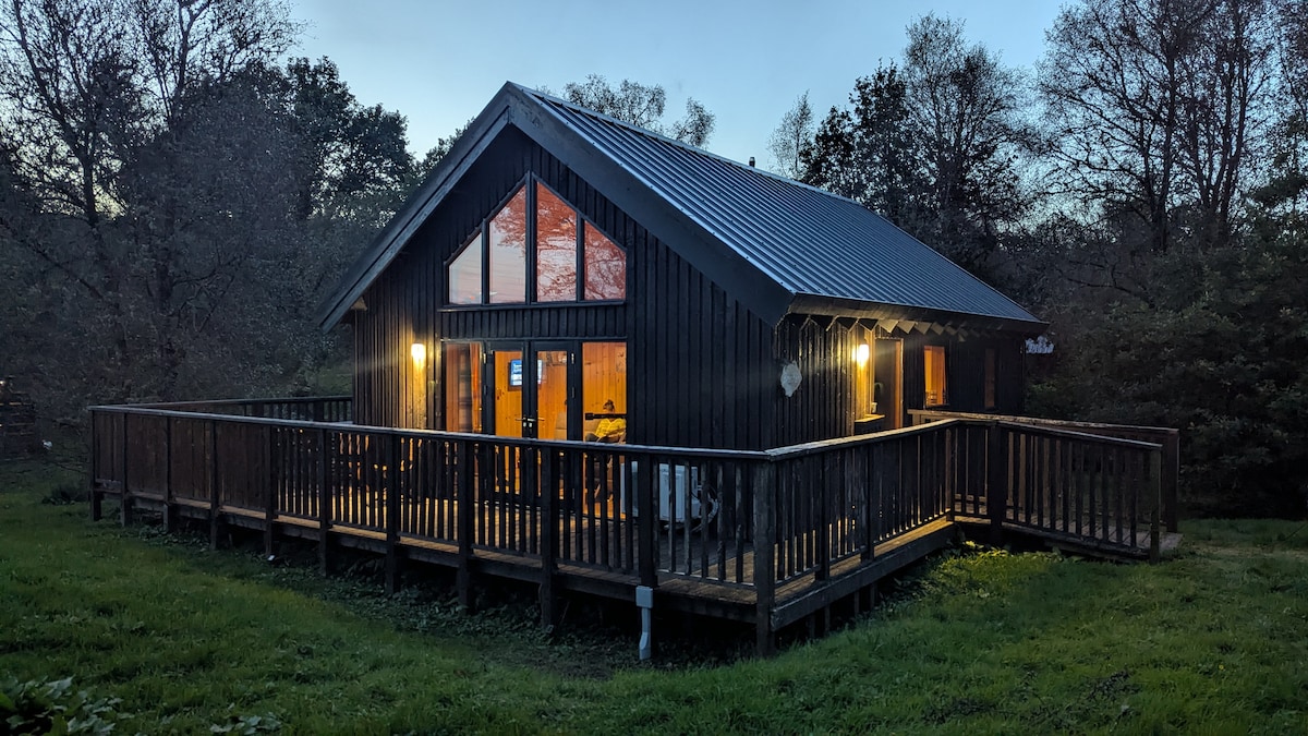 Belle, 2 rooms log cabin w/hot tub forest & loch