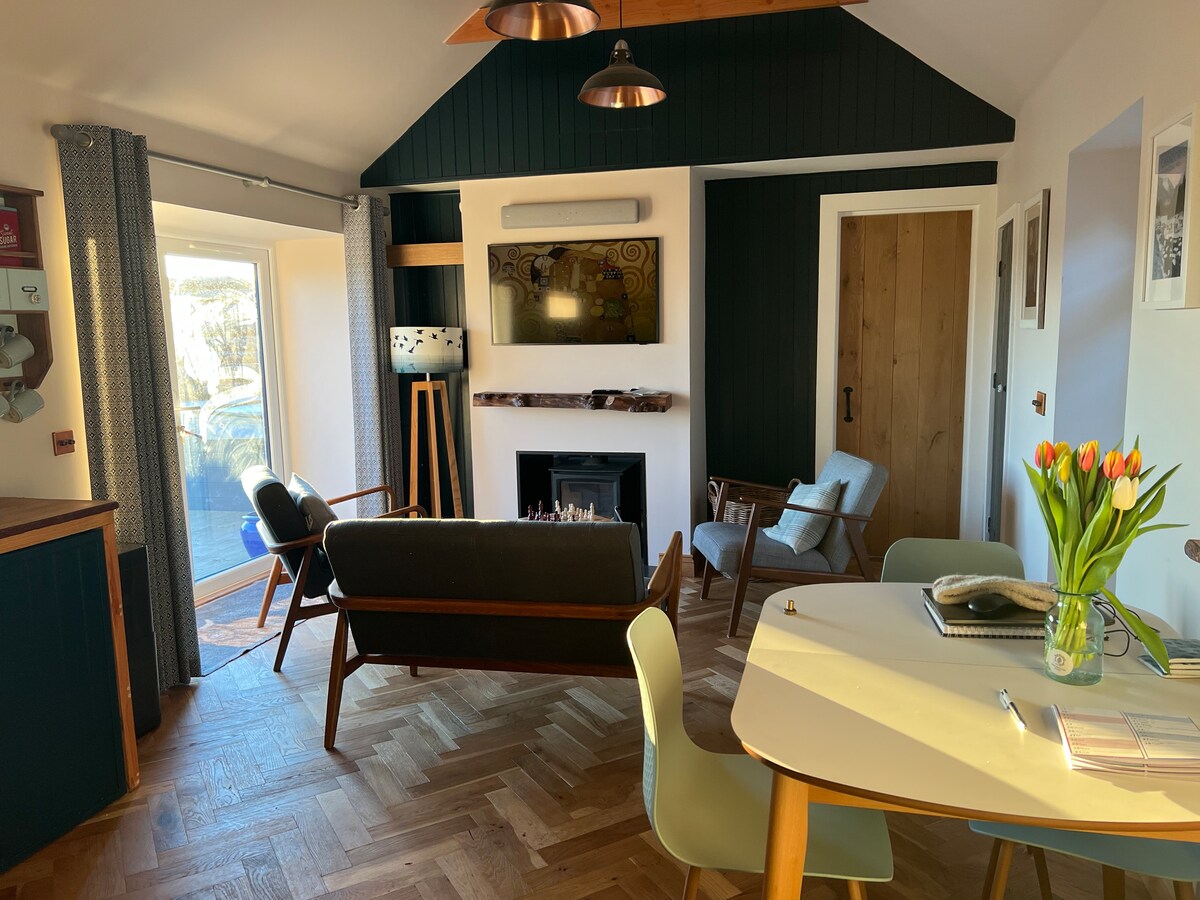 El Jilguero es un hermoso y espacioso apartamento tipo estudio para dos personas con entrada privada y un enorme jardín. En la planta baja de nuestra encantadora granja, este apartamento ofrece cómodos asientos, comedor, estufa de leña y una pequeña cocina bien equipada con nevera, vitrocerámica, horno microondas combinado y lavavajillas. Cama tamaño king muy cómoda y baño con gran ducha a ras de suelo y inodoro de estilo japonés. Artículos de aseo de Scottish Fine Soaps de cortesía. La llegada autónoma está disponible.
