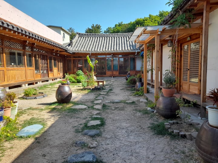 Hanok privado en Hwangnidan-gil, Gyeongju/ Jardín privado/ Habitación con cama + 2 habitaciones con calefacción por suelo radiante/ A poca distancia de lugares turísticos/ Artículos para bebés/ Bouncer