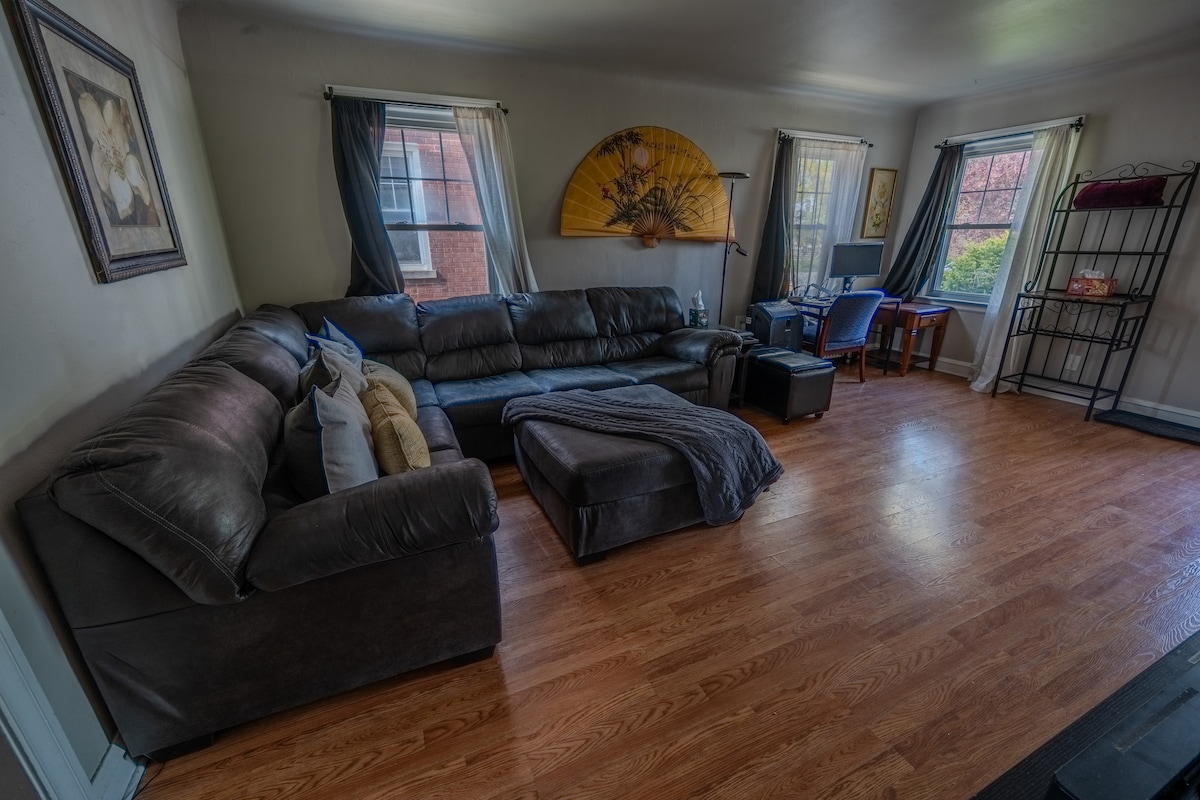 Relájate y desconecta en este alojamiento tranquilo y elegante. Estamos encantados de tenerte como nuestro huésped. Este apartamento se encuentra en el segundo piso (entrada desde las escaleras exteriores). Estamos a 30 minutos del centro de la ciudad (sin tráfico), a 4 minutos de Chicago Skyway y a 11 minutos de la Interestatal 94. Entra en tu espacio a través de tu propia entrada privada y siéntete como en casa. Tu unidad incluye 1 dormitorio privado, 1 baño, una cocina, sala de estar con sofá cama y escritorio.