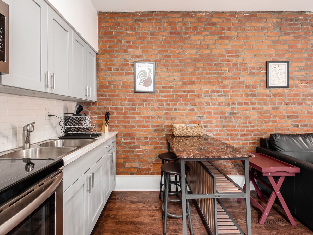 Disfruta de una estancia elegante en este loft céntrico con todo el encanto de German Village a los pies del centro de la ciudad. 1 cama tamaño king + sofá cama tamaño queen + espacio de trabajo dedicado con wifi rápido. 2 plazas de aparcamiento dedicadas fuera de la calle. A ★ 5 minutos del estadio Nationwide Arena. A ★ 12 minutos del estadio de Ohio. A ★ 6 minutos del Centro de Convenciones del Gran Columbus. A ★ 7 minutos de Short North. A ★ 4 minutos del Nationwide Children's Hospital. A poca★ distancia a pie de restaurantes, tiendas y parques tanto en GV como en el centro de la ciudad.