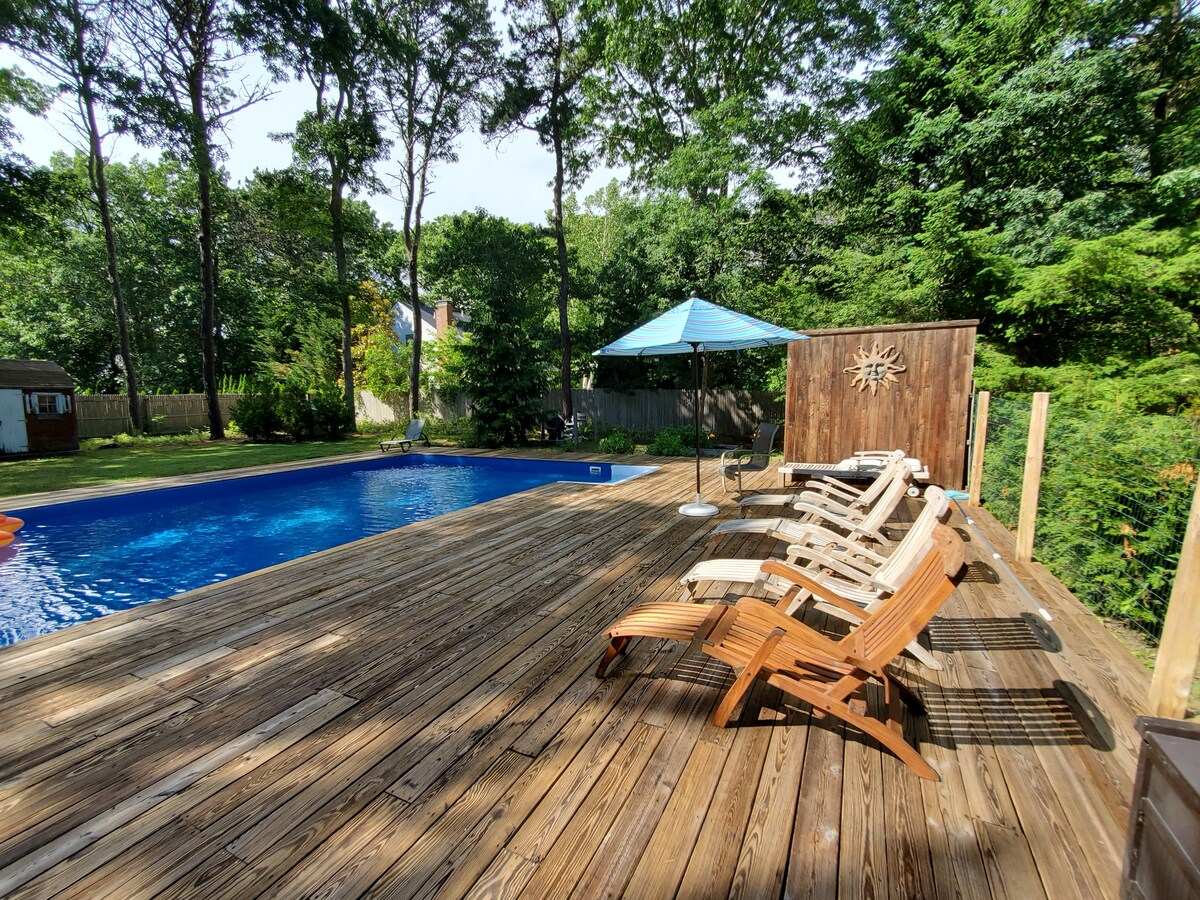 A un corto paseo en bicicleta de Amagansett y East Hampton Villages, las playas oceánicas, las rutas de senderismo de Peconic Landtrust y Balsam Farmstand. Los árboles maduros y las delicadas hortensias crean un escape tranquilo para disfrutar de la parrilla y disfrutar de la terraza de comedor de caoba y la piscina soleada y climatizada por temporada. Ponte cómodo en la sala de estar al aire libre mientras asas malvaviscos alrededor de la generosa chimenea de hormigón. Este es el telón de fondo por excelencia de los Hamptons para un momento tranquilo y relajado para personas de todas las edades.