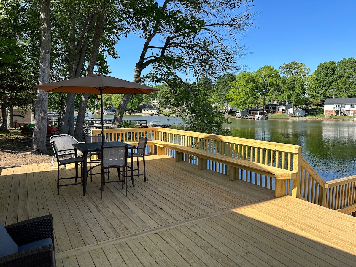 Take it easy at this unique and tranquil getaway. High rock lake front very secluded area of the lake. Private pier and floating dock. We are on a shallow part of the lake at times if it’s dry enough or damns open out pier can be on the ground. 95% of them time we have good water. There are outside cameras and they are off during your stay, but if it makes you feel more comfortable, we leave the blink module in living room you can unplug during your stay just plug back in when you leave