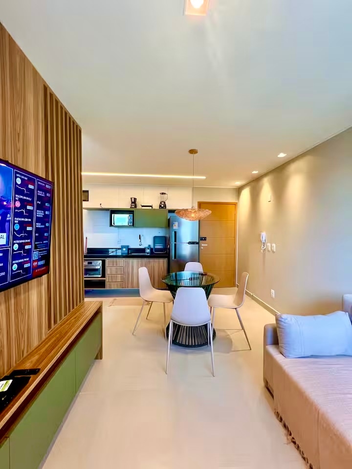 "Apartamento nuevo, recién reformado, con decoración moderna, situado en el corazón de Ponta Verde, Pajuçara, Ferinha do artesanato y Jatíuca, las mejores playas de Maceió, a 5 minutos del apartamento las playas antes mencionadas, apartamento con un área útil de 50 metros - sala integrada con la cocina, 1 dormitorio (suite) con baño integrado- Aire acondicionado de 9.000 BTu. Internet- Wi-fi - Netflix, Ropa de cama y toalla de baño, utensilios completos, cocina, vasos, tazas, nevera, cafetera, 2 TV. Conserje 24 horas.