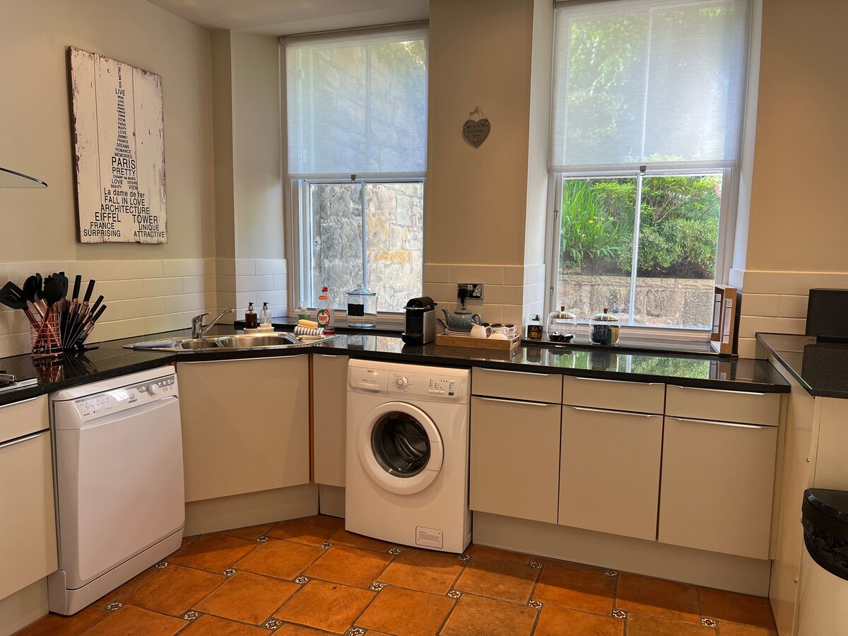 Encantador apartamento tradicional georgiano con jardín en la planta baja y en el sótano, en una tranquila calle empedrada a un paso de la preciosa Stockbridge, con su mercado de artesanía, galerías de arte, bares, cafeterías, restaurantes y tiendas únicas. Nuestro apartamento es una base ideal para familias en Edimburgo. Justo en el corazón de la elegante ciudad nueva y a 10 minutos a pie de Princes St, todo lo que necesitas está a la vuelta de la esquina. Disfruta de un jardín privado y soleado con comedor al aire libre y patio con luces de hadas.