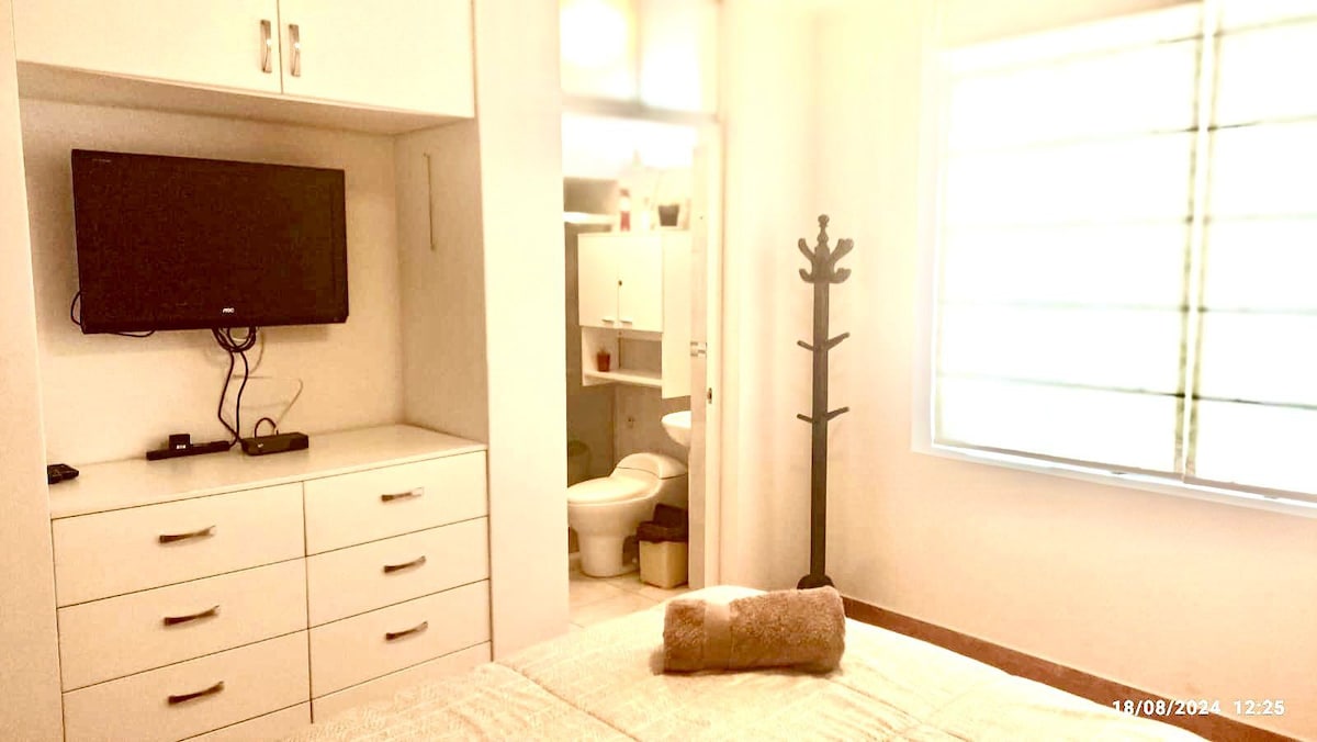 Disfruta de una estancia cómoda y práctica en esta habitación privada con vista interior ubicada en el piso 3 en un edificio seguro y bien conectado. El espacio cuenta con cama 2 plazas , TV, minibar y acceso a un baño de uso exclusivo, ubicado justo fuera de la habitación, garantizando total privacidad y limpieza. Es una opción ideal para viajeros que buscan un lugar tranquilo para descansar, trabajar o pasar unos días en la ciudad sin complicarse.