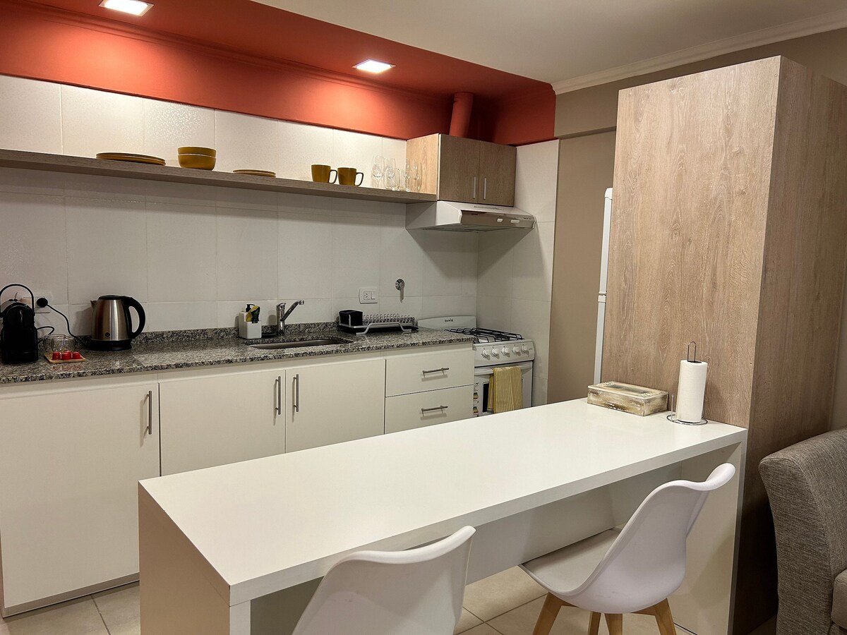Monoambiente moderno y a estrenar, ideal para hasta 2 personas, diseñado para ofrecer confort, funcionalidad y estilo. El espacio integra una TV de gran tamaño, sofá cómodo y cocina completa, totalmente equipada para una estadía práctica. Cuenta además con mesa de escritorio, ideal para home office. Ubicado en planta baja y en pleno centro, combina diseño contemporáneo, comodidad y una ubicación privilegiada.