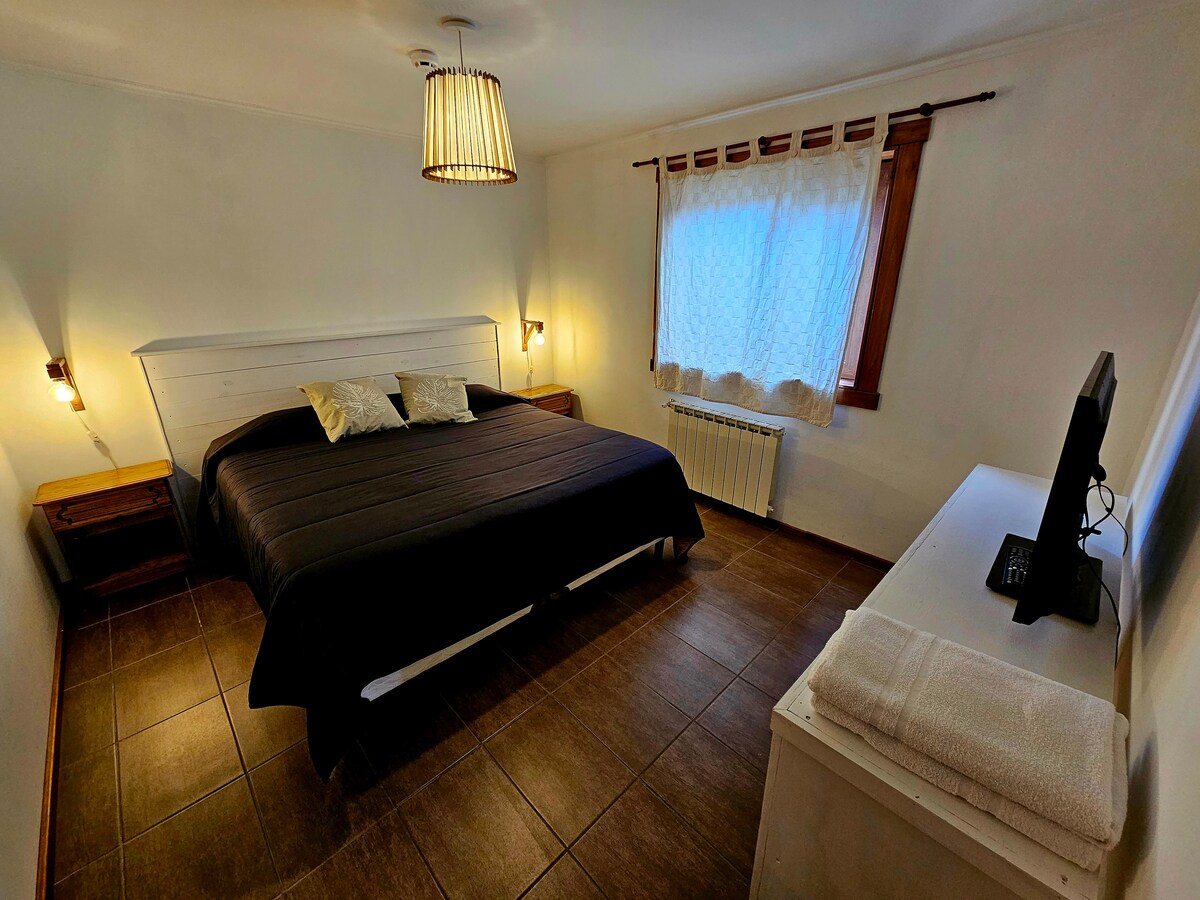 El departamento ubicado a pasos de la Av. principal y de las sendas de este encantador pueblo; cuenta dos ambientes; una luminosa sala de estar y comedor integrados a una cocina completamente equipada con cocina vitroceramica, microondas, heladera, tostadora, pava eléctrica, utensilios y hermosa vajilla. Dispone de una elegante barra central de madera, sillones y una recepción. Y ofrece una habitación independiente con opción de una cama doble o dos camas individuales con smart TV! Inolvidable!