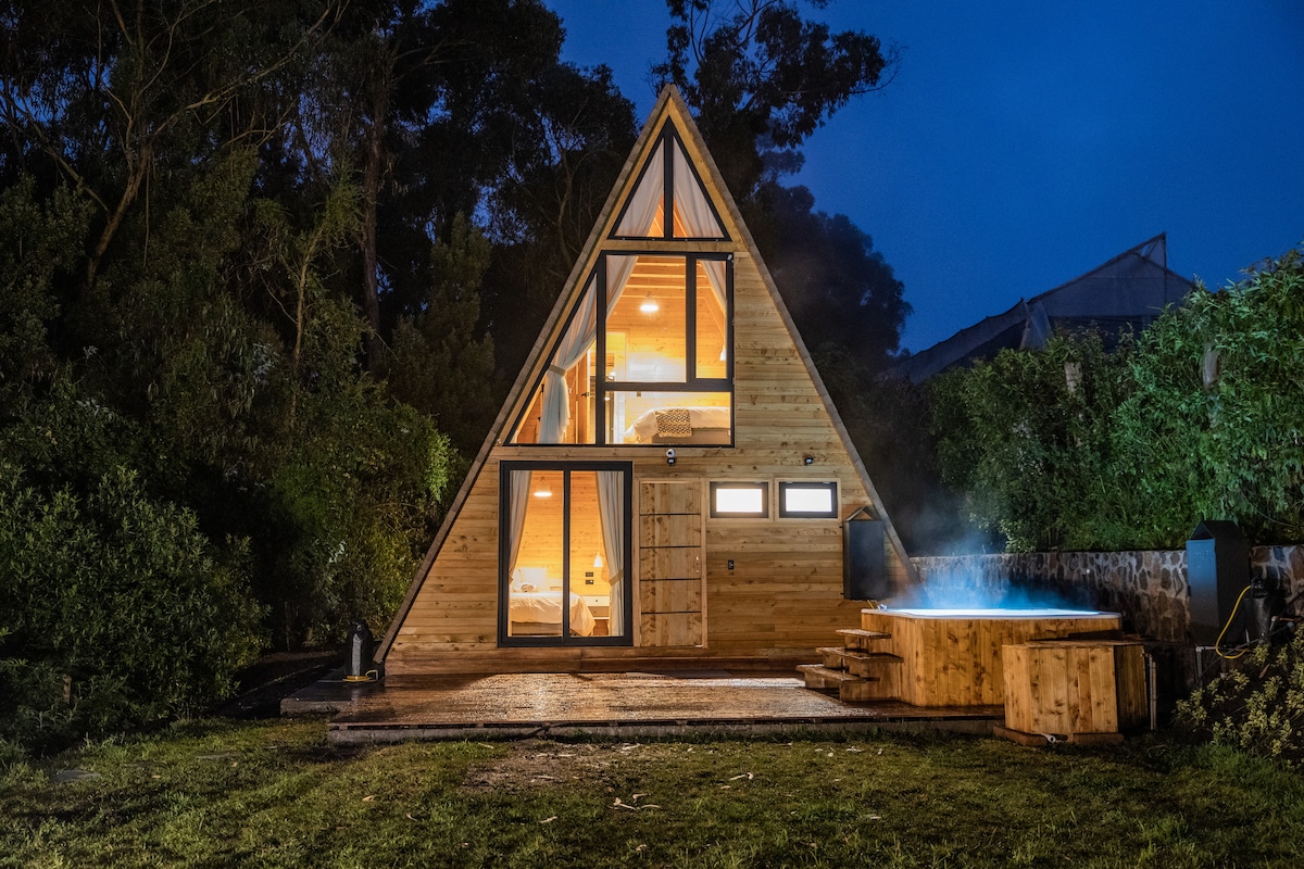 Cabaña acogedora a pocos minutos de las cascadas del Molinuco y el mágico Rumibosque🌲. Relájate en el columpio con vista panorámica, disfruta del fogatero con roca volcánica o de una fogata al aire libre 💫 🪵. Te recibimos con vino y masmelos de cortesía para una noche mágica. Descansa en una cama súper cómoda king size, disfruta de TV con plataformas de streaming y área BBQ. Opcional: decoraciones especiales desde $15 🩵🌝
