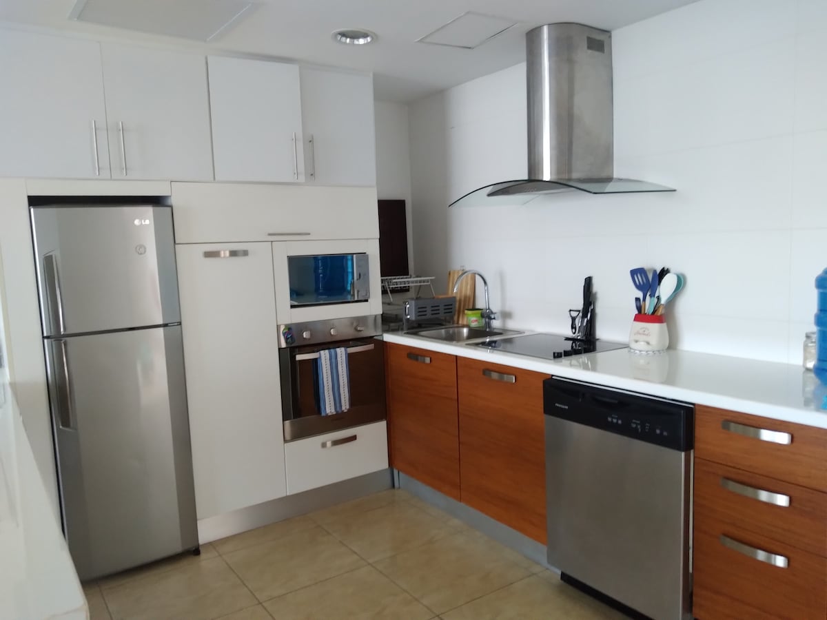 Lindo apartamento: confortable, fresco y relajante... las camas disponibles muy cómodas y con cocina full equipada con lavadora y secadora, ideal para estancias largas. El edificio con 3 piscinas grande y una de niños, cancha de voleibol, área de barbacoa, frente al mar y con acceso a playa. Internet de buena calidad y servicio de cable para estar conectados y teletrabajo, a 15 min de Coronado donde hay supermercados y plazas. Aceptamos Mascotas solo para estadías superiores a 5 días...