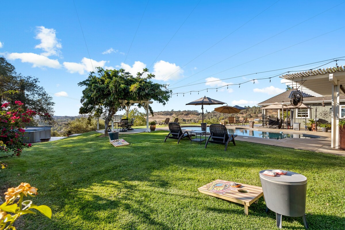 ¡Te damos la bienvenida a Mela Manor! Nuestra casa de 3700 pies cuadrados se encuentra en el corazón de Apple Hill, el lugar perfecto para reunir a amigos y familiares para un viaje inolvidable. Este alojamiento tiene capacidad para 10 adultos y 4 niños de 5 años o menos. La casa ofrece MUCHO espacio, un ambiente clásico de granja con todas las comodidades modernas y vistas prístinas. A poca distancia a pie de la cervecería local, Apple Barn y Rainbow Orchard. A 1-2 millas del campo de golf Apple Mountain, Apple Hill Farms, bodegas y restaurantes. ¡Algo que hacer para TODOS!