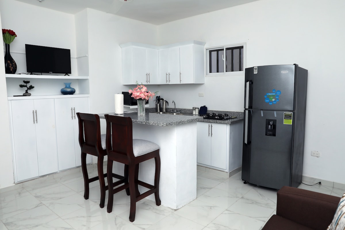 Encantadora casa en un 2do. nivel ubicada en el centro de Nagua, compuesta por 2 habitaciones ambas con aire acondicionado, 1 baño moderno con AGUA CALIENTE, sala de estar con Smart TV 4K de 55 plgs , NETFLIX, YouTube Premium, WiFi 50/10 mbs, cocina equipada. cuenta con una balcón amplio y acogedor, con parqueo en las instalaciones, es una residencia segura COMPARTIDA con otras casas en la propiedad, la casa está a tan solo 2 minutos caminando del parque central.