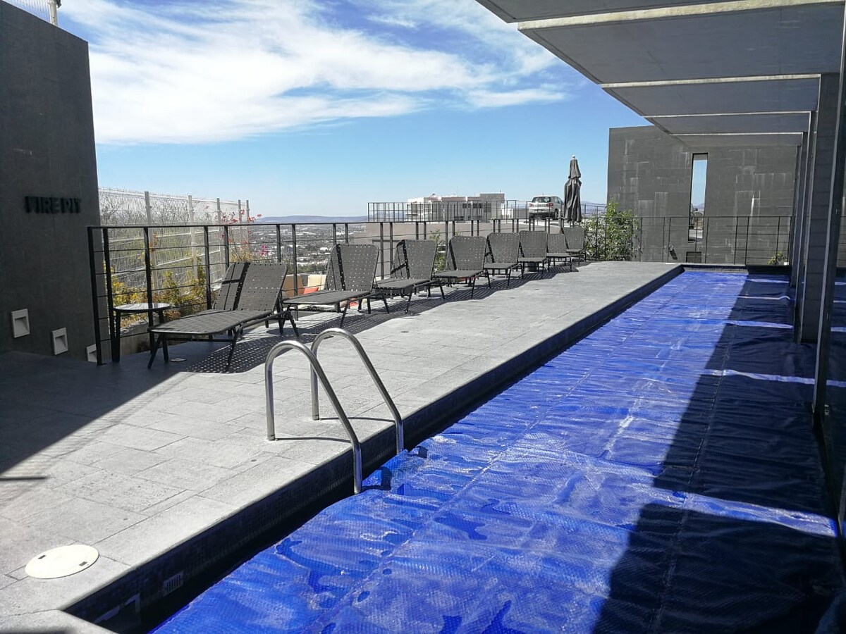 Gran Loft, Cerca de todo, ubicado en el sur de Querétaro al lado de la avenida Bernardo Quintana Principal en la ciudad, Tendrás acceso a muchas comodidades como gimnasio, sauna, piscina infinita, cine, servicio de conserjería, estacionamiento cubierto y seguridad 24/7 .