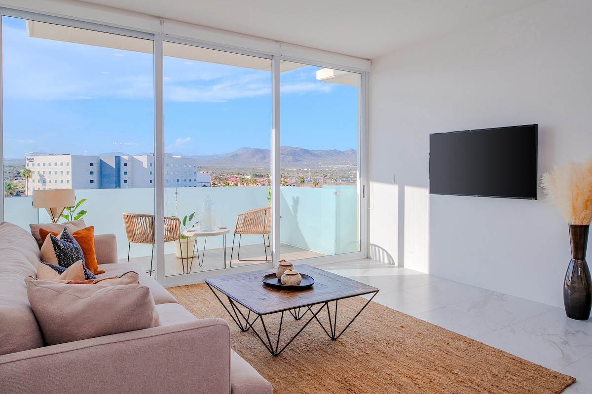 Descubre un paraíso de lujo en Los Cabos en este espectacular condo nuevo, ideal para unas vacaciones inolvidables. - Terraza privada con vista al mar y al arco - Alberca, jacuzzi y fire pit - Terraza con asador y todo lo necesario para cocinar - Diseño moderno, totalmente equipado - Excelente ubicación: a 5 mins de la playa, 1 min al supermercado - Cerca de los mejores restaurantes de la ciudad - Seguridad las 24 horas del día - Perfecto para vacaciones en familia