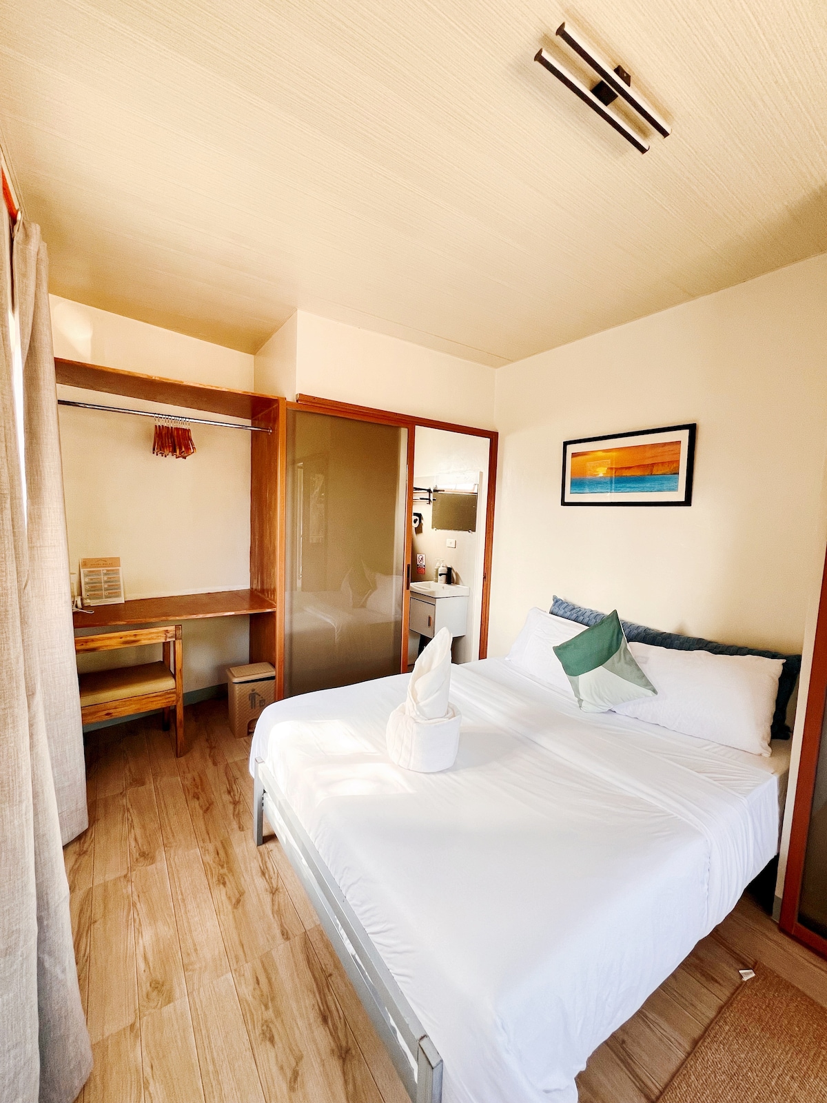 ¡Bienvenido a nuestra villa de dos dormitorios en El Nido, Palawan! El dormitorio principal cuenta con una cama tamaño king con baño privado, mientras que el dormitorio de invitados tiene dos camas tamaño queen y un baño de invitados separado. Relájate en la cocina al aire libre y en la sala de estar, con piscina privada. Es un espacio perfecto para relajarse después de un ajetreado día de recorrido por la isla. Estamos a solo 30 metros de la playa, ofreciendo fácil acceso a la orilla y ¡uno de los MEJORES lugares para ver la puesta de sol en todo El Nido!